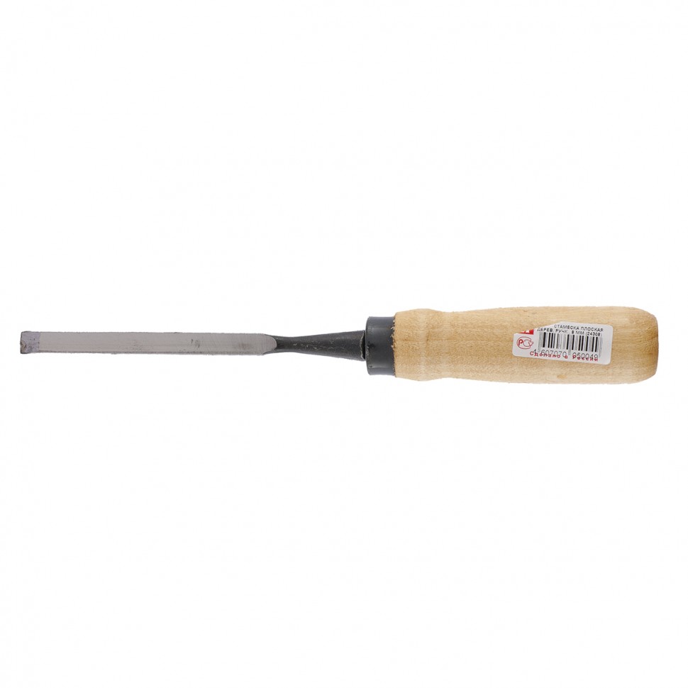 Плоская стамеска Арефино 24308 с рабочей частью шириной 8 мм и деревянной рукояткой пригодится для проведения столярных и плотницких работ. Она позволяет получить ровный прямоугольный паз в древесине, осуществить выборку и зачистку углублений, снять фаски, отделить стружку.