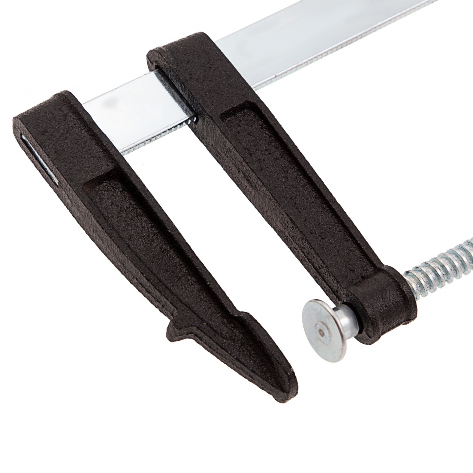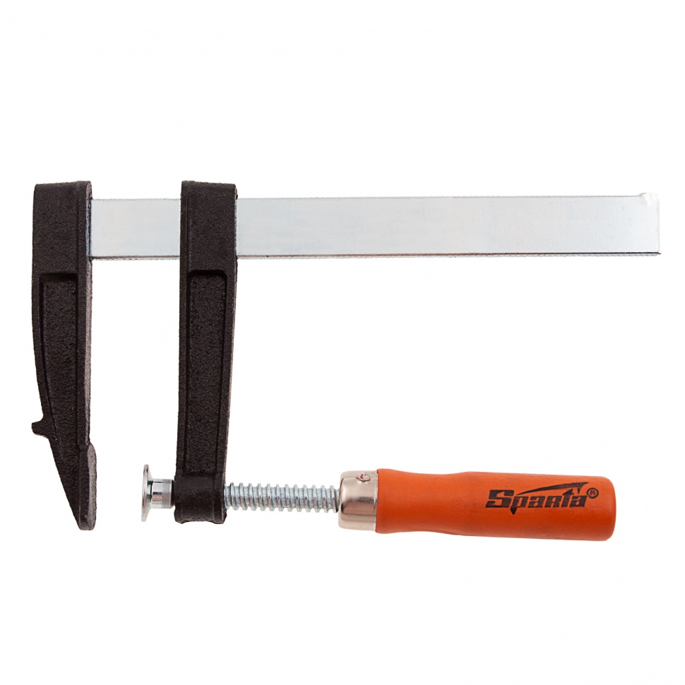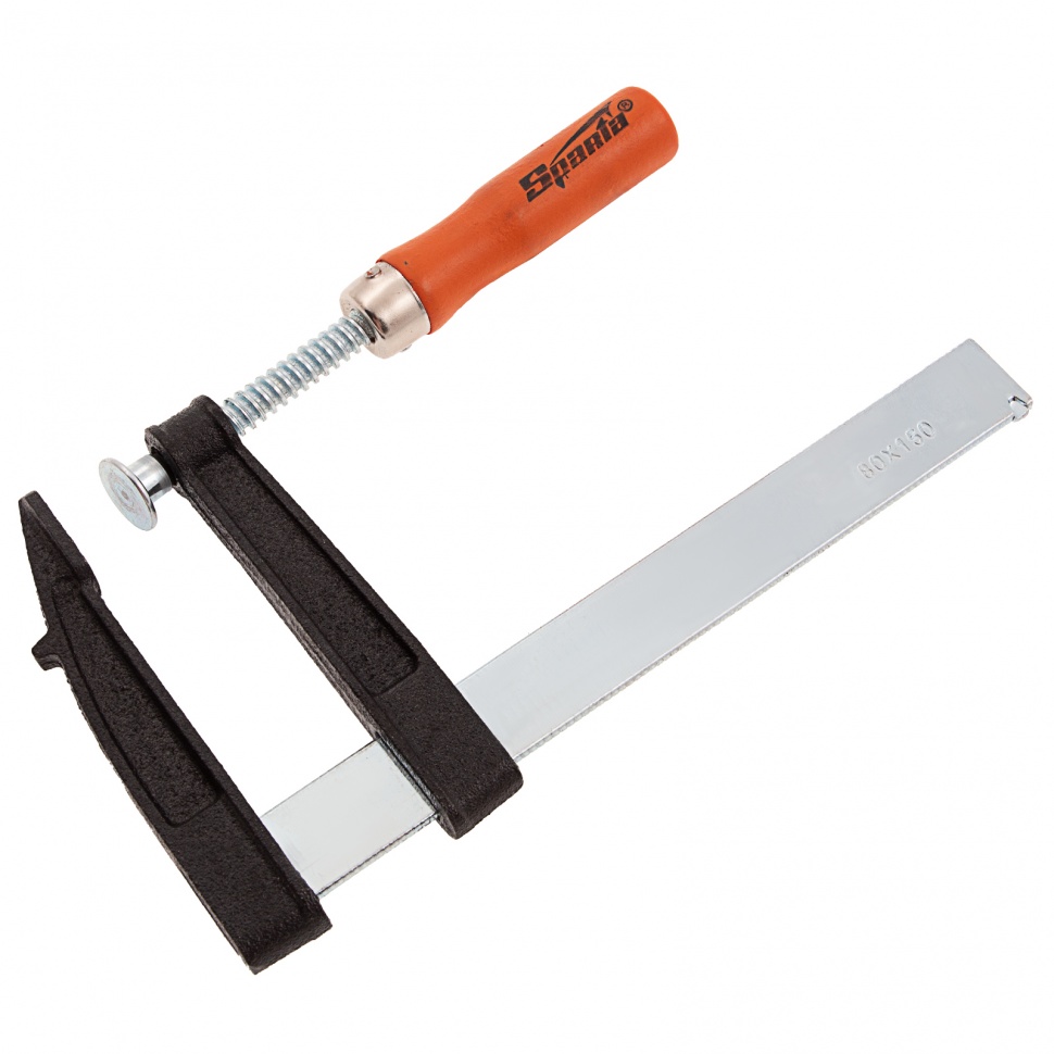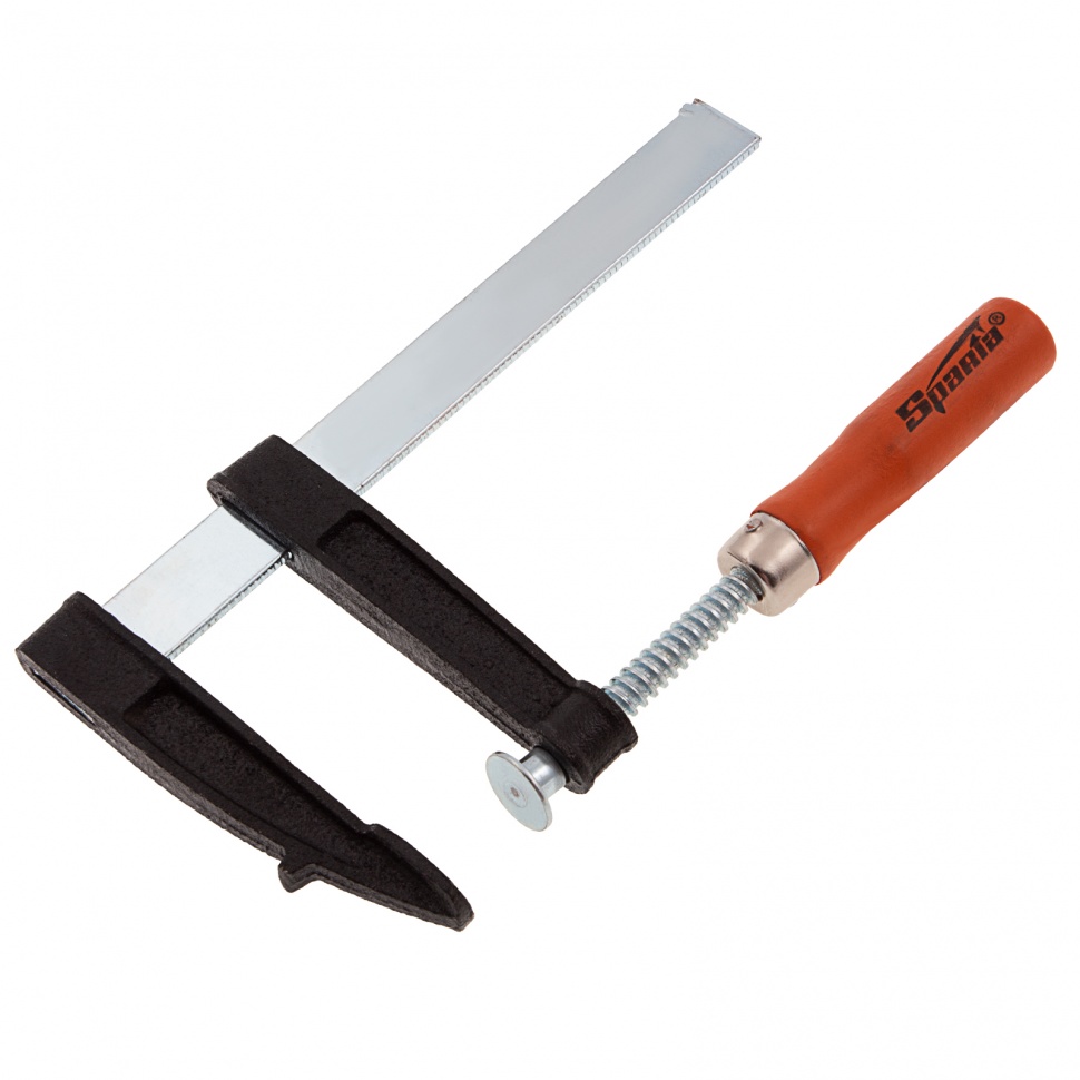 F-образная струбцина Sparta 204245, 150 x 80 x 210 мм, используется в столярном и слесарном деле и позволяет фиксировать заготовки из металла, древесины и других материалов для их соединения или обработки. Деталь помещают между губками, одна из которых подвижна и служит для регулировки величины захвата. Винтовой зажим позволяет прикладывать значительное усилие для надежной фиксации. Защитные накладки предотвращают повреждение детали. Элементы конструкции выдерживают высокую температуру, поэтому струбцина подходит для проведения сварочных работ, при этом пластиковые накладки необходимо снять.