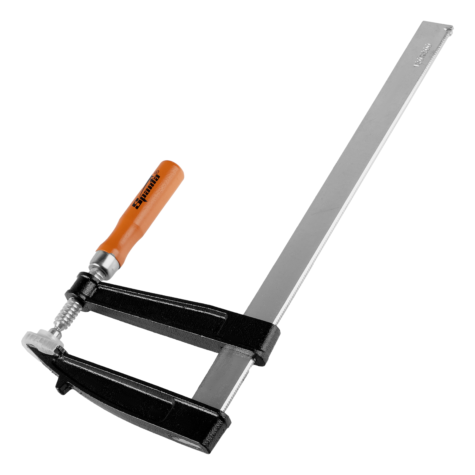 F-образная струбцина Sparta 204385 длиной 365 мм и величиной зажима 300 х 120 мм позволяет фиксировать заготовки из металла, древесины и других материалов для их соединения или обработки. Используется в столярном и слесарном деле. Деталь помещают между губками, одна из которых подвижна и служит для регулировки величины захвата. Винтовой зажим позволяет фиксировать заготовку со значительным усилием. Элементы конструкции выдерживают высокую температуру, поэтому струбцина подходит для проведения сварочных работ, при этом пластиковые накладки необходимо снять.