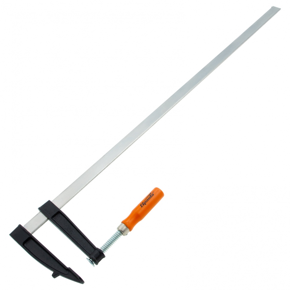 F-образная струбцина Sparta 204445 длиной 865 мм и величиной зажима 800 х 120 мм позволяет фиксировать заготовки из металла, древесины и других материалов для их соединения или обработки. Используется в столярном и слесарном деле. Деталь помещают между губками, одна из которых подвижна и служит для регулировки величины захвата. Винтовой зажим позволяет фиксировать заготовку со значительным усилием. Элементы конструкции выдерживают высокую температуру, поэтому струбцина подходит для проведения сварочных работ, при этом пластиковые накладки необходимо снять.