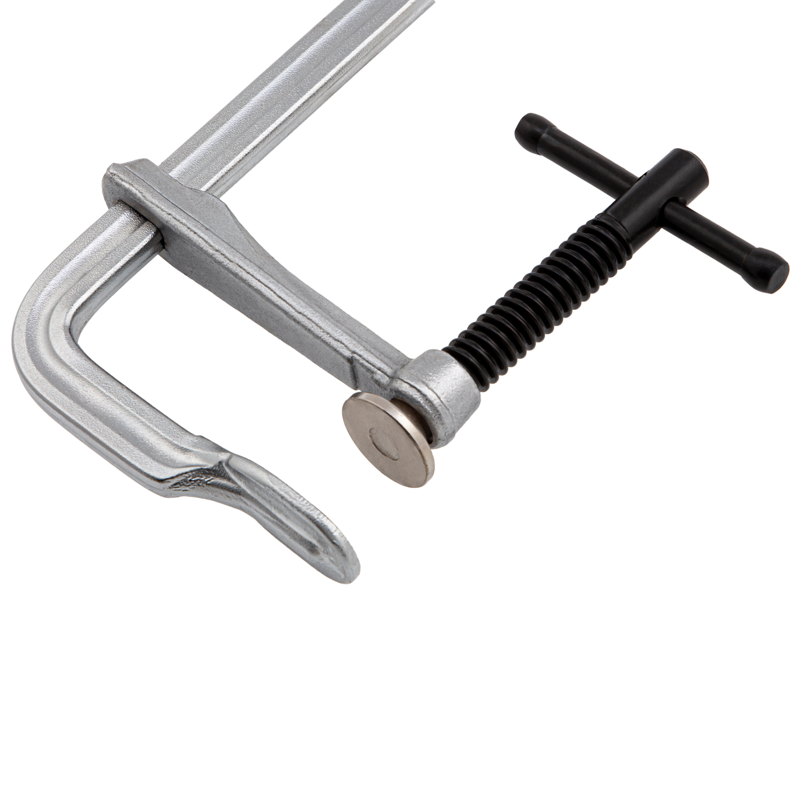- Хромированное покрытие надежно защищает струбцину от коррозии.