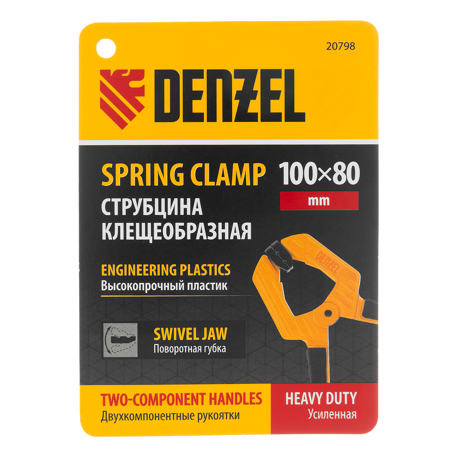 Струбцина клещеобразная удлиненная Denzel 20798 с глубиной зажима 80 мм, с двухкомпонентными рукоятками, способна удерживать детали толщиной до 100 мм. Будет полезна при склеивании или разметке заготовок. Подвижные губки с углублениями на прижимных поверхностях позволяют максимально точно позиционировать деталь при захвате. Струбцина пригодится в столярной мастерской, дома или на даче.