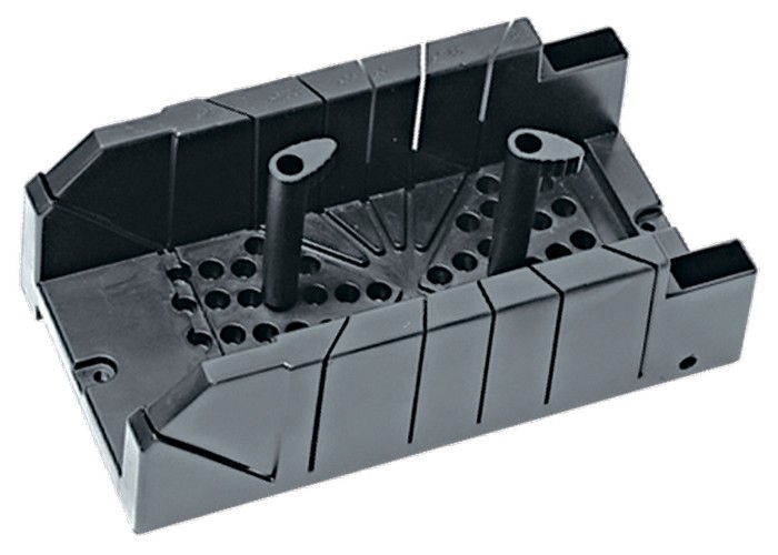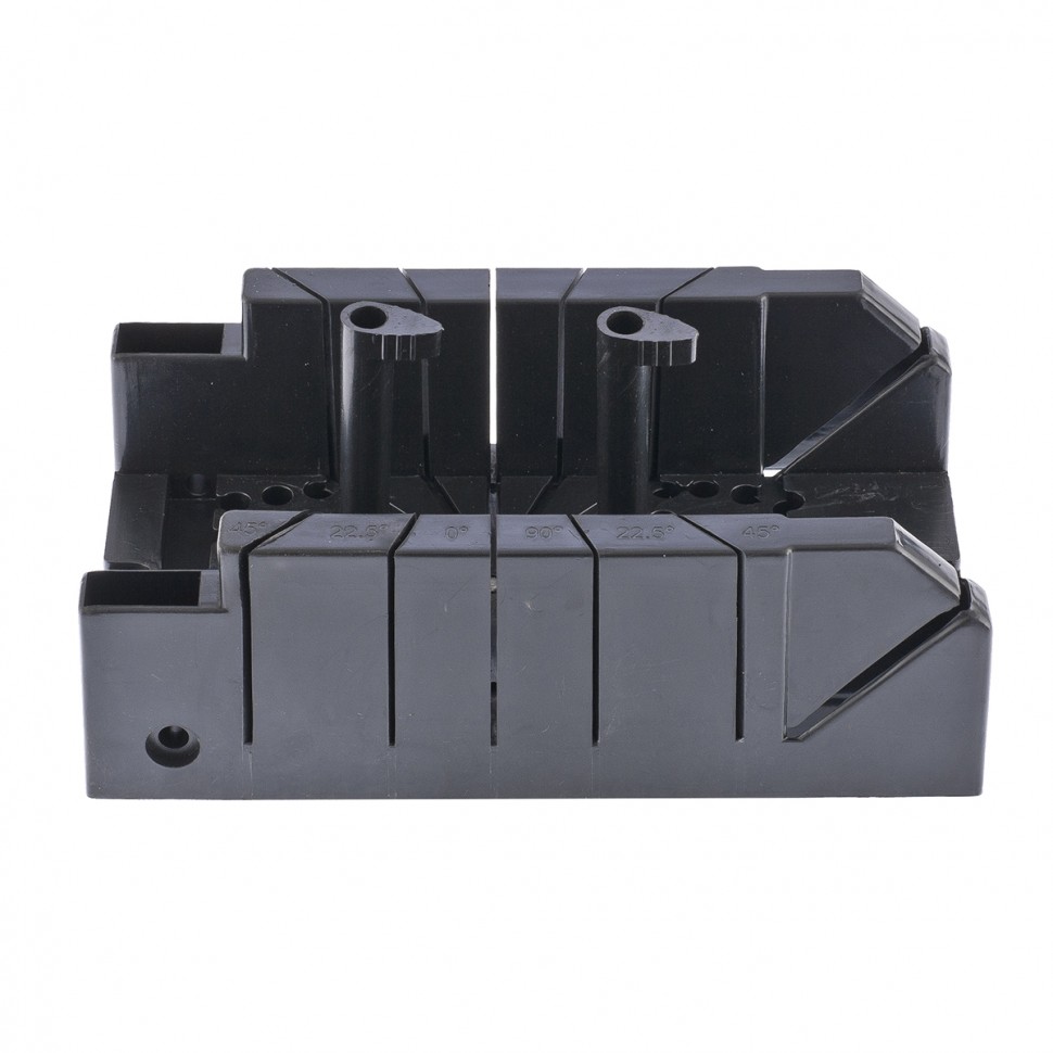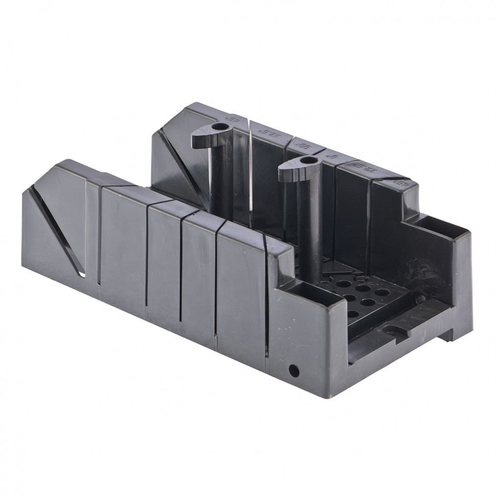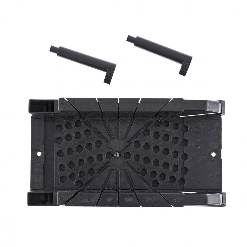 Стусло изготовлено из пластмассы. В комплект входят два пластмассовых фиксатора, обеспечивающих фиксацию обрабатываемых заготовок. Стусло позволяет делать пропилы под углами 22,5, 45, 90, 135 градусов в горизонтальной плоскости, а также 45 градусов – в вертикальной.