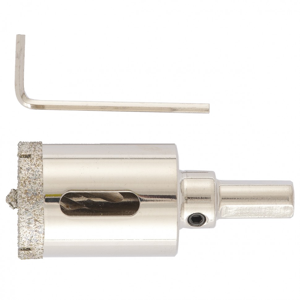 Универсальное алмазное сверло по керамограниту Matrix 726303 размером 30 х 67 мм, с 3-гранным хвостовиком, применяется для получения отверстий в стекле, плитке, кафеле. За счет высокой концентрации алмазов в режущем слое оно легко справляется со сверлением керамогранита. Сверло рассчитано на профессиональное использование с дрелями и шуруповертами. Водяное охлаждение в процессе работы значительно повышает срок службы оснастки.