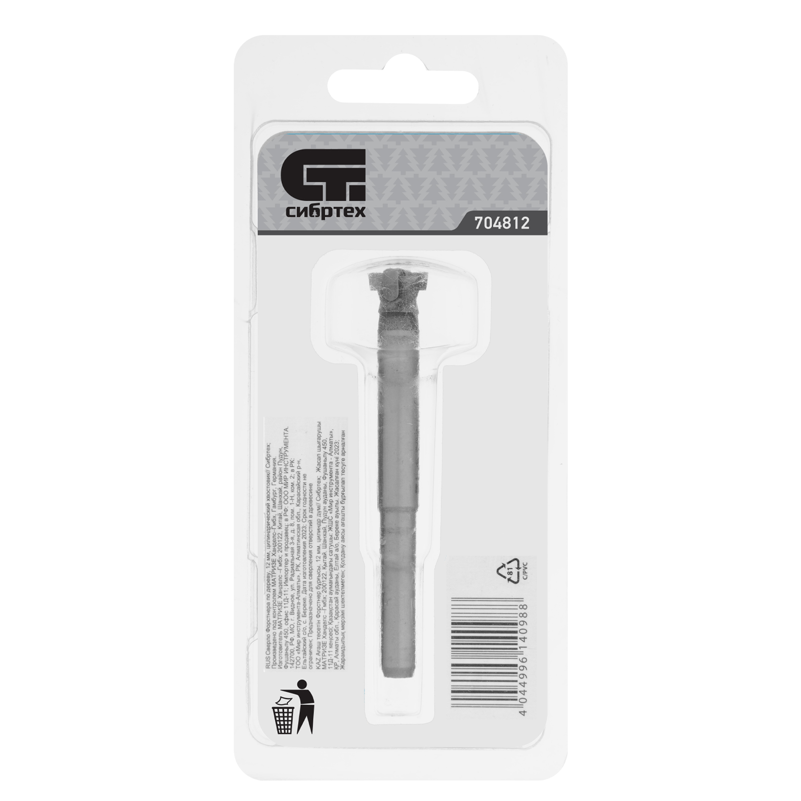 Сверло Форстнера по дереву Сибртех 704812 с цилиндрическим хвостовиком, используется для получения глухих отверстий диаметром 12 мм в древесине, ДСП, ДВП и других материалах. Благодаря продуманной конструкции инструмента стенки и дно отверстий получаются ровными и гладкими. Сверло применяют для производства мебели, а также отделочных работ.
