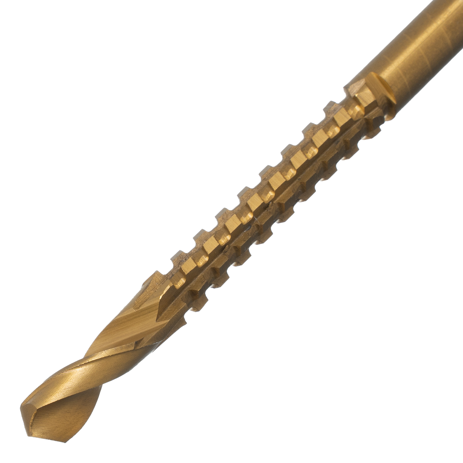 - Нитридтитановое покрытие защищает сверло-фрезу от коррозии и повышает его устойчивость к перегреву.