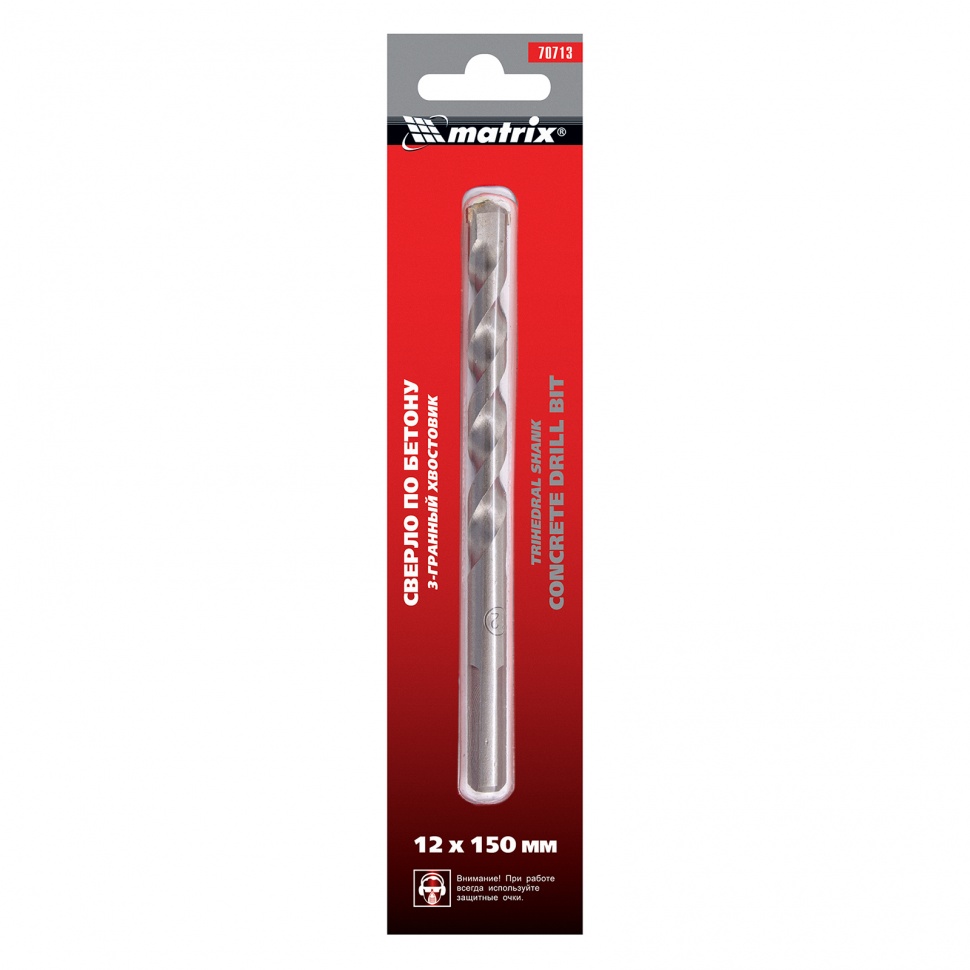 Сверло по бетону Matrix 70713 размером 12 х 150 мм, с 3-гранным хвостовиком, используется для получения отверстий с помощью дрели. Пригодится для сверления бетона, мрамора, керамики и других твердых материалов.