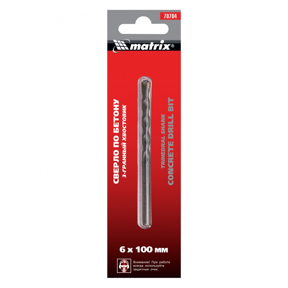 Сверло по бетону Matrix 70704 размером 6 х 100 мм, с 3-гранным хвостовиком, используется для получения отверстий с помощью дрели. Пригодится для сверления бетона, мрамора, керамики и других твердых материалов.