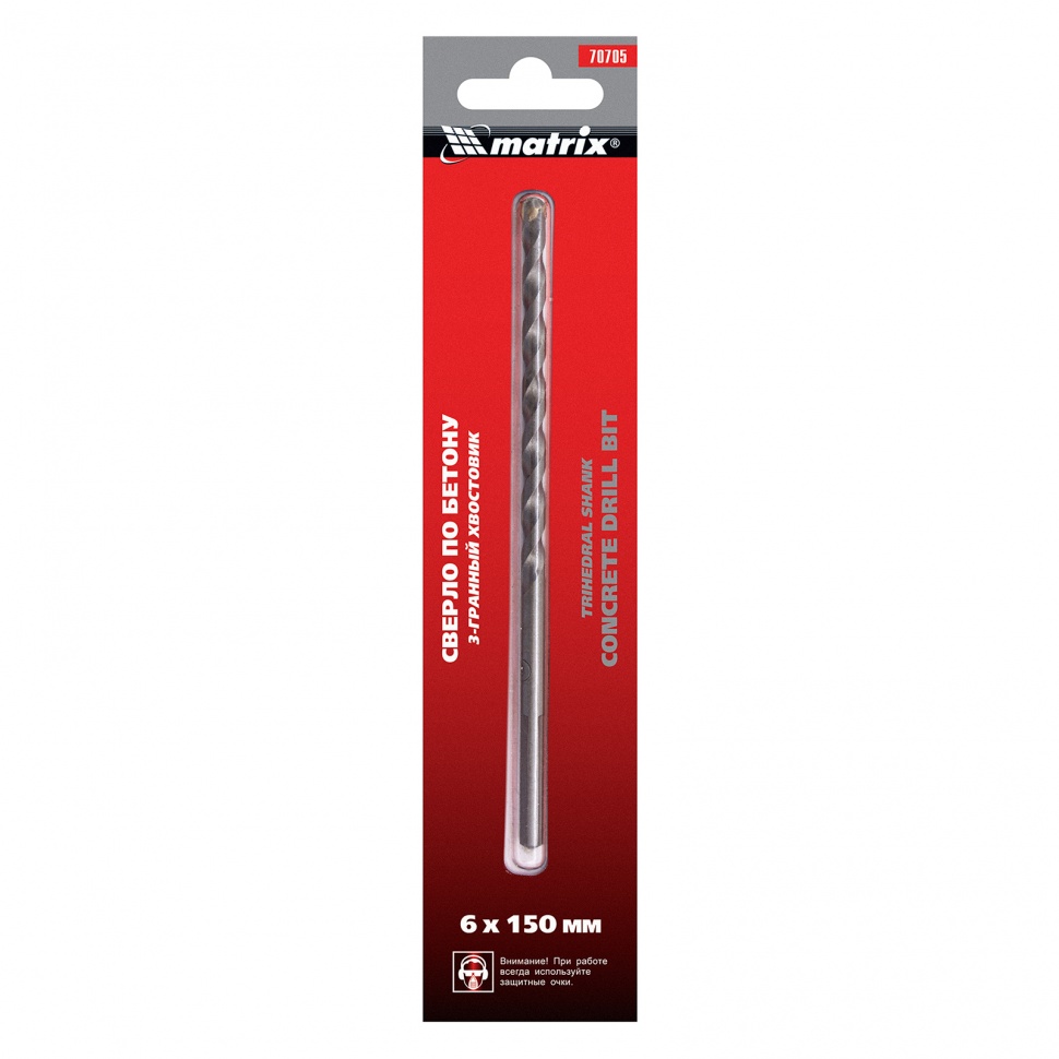 Сверло по бетону Matrix 70705 размером 6 х 150 мм, с 3-гранным хвостовиком, используется для получения отверстий с помощью дрели. Пригодится для сверления бетона, мрамора, керамики и других твердых материалов.