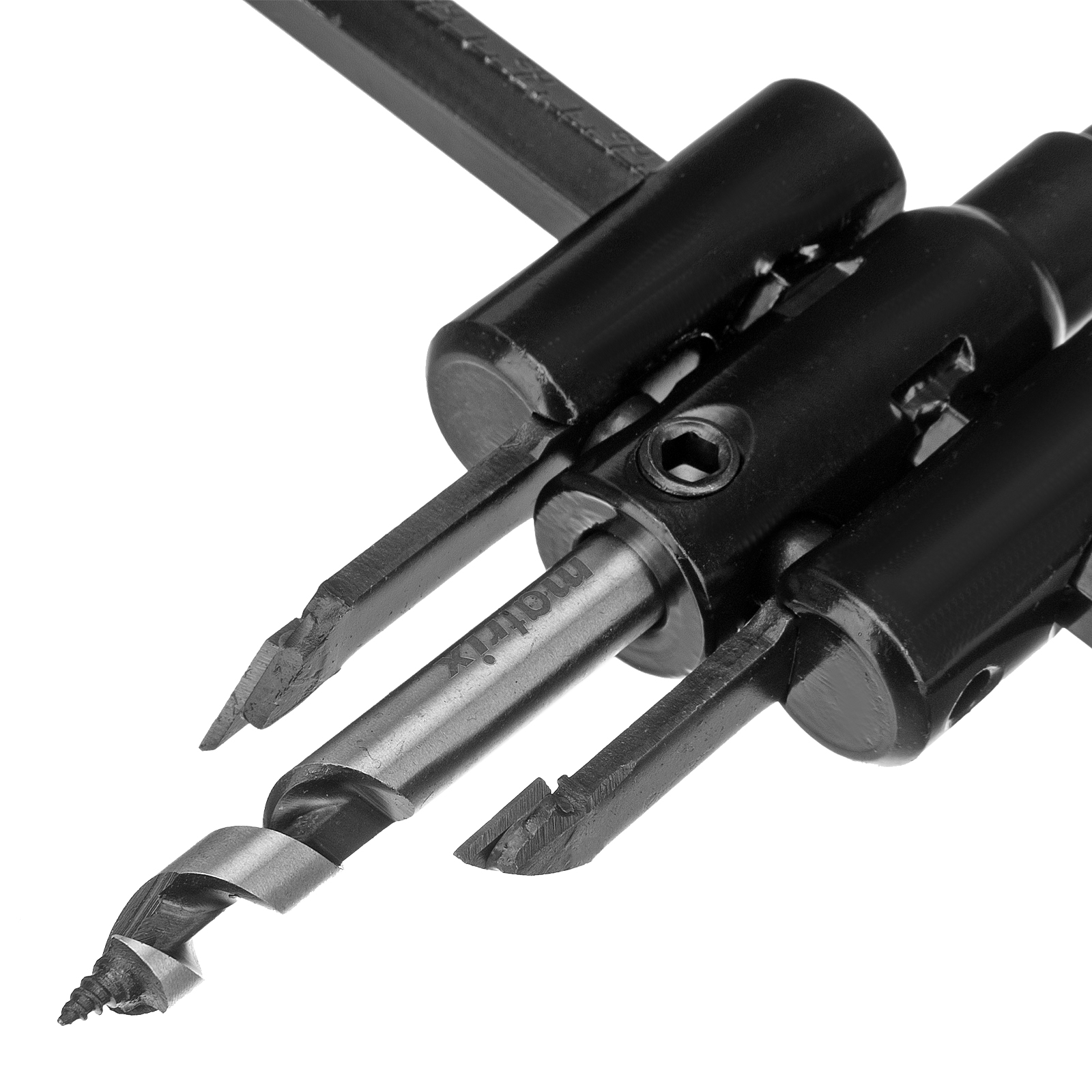 - Сверление отверстий разного диаметра — с помощью шестигранного ключа можно быстро регулировать положение резцов.