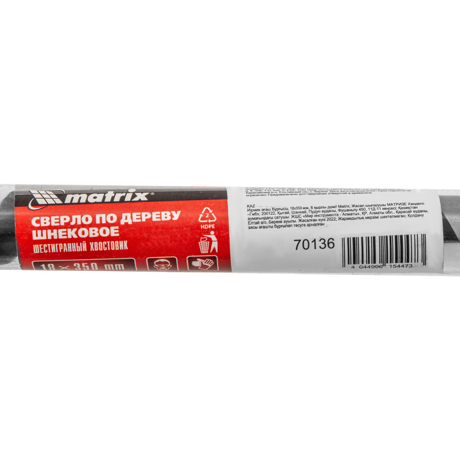 Шнековое сверло по дереву Matrix 70136 размером 18 х 350 мм, с 6-гранным хвостовиком, предназначено для получения глубоких отверстий. Подходит для работы как с мягкими, так и с твердыми породами древесины. Конструкция сверла рассчитана на интенсивное использование с высокими нагрузками в ходе строительных, ремонтных и отделочных работ.
