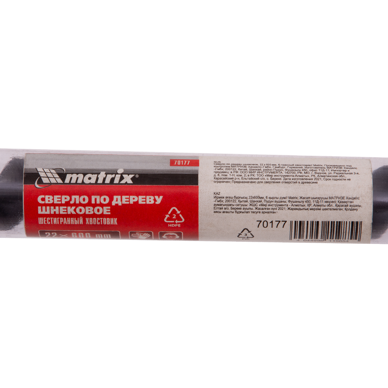 Шнековое сверло по дереву Matrix 70177 размером 22 х 600 мм, с 6-гранным хвостовиком, предназначено для получения глубоких отверстий. Подходит для работы как с мягкими, так и с твердыми породами древесины. Конструкция сверла рассчитана на интенсивное использование с высокими нагрузками в ходе строительных, ремонтных и отделочных работ.