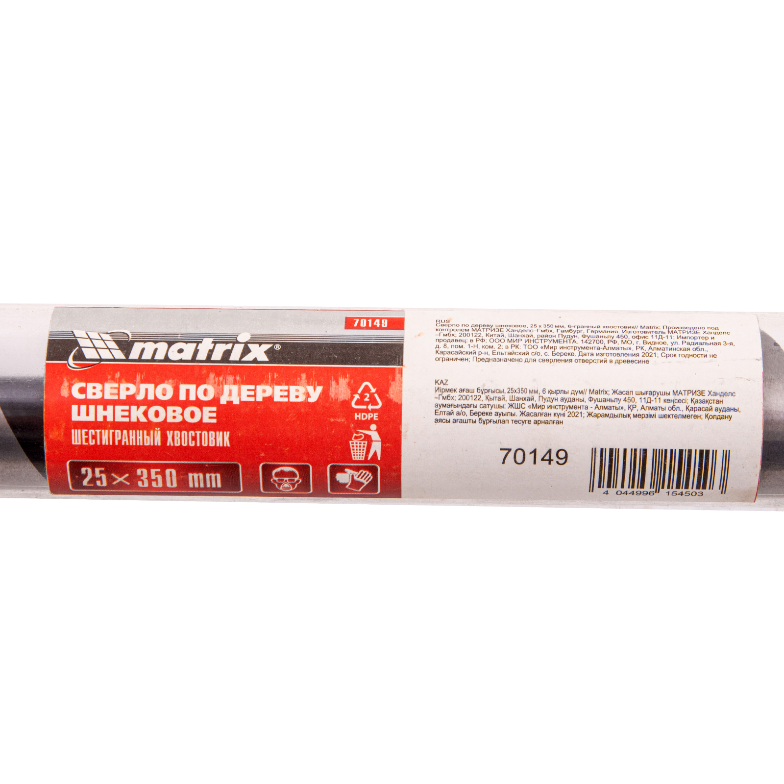 Шнековое сверло по дереву Matrix 70149 размером 25 х 350 мм, с 6-гранным хвостовиком, предназначено для получения глубоких отверстий. Подходит для работы как с мягкими, так и с твердыми породами древесины. Конструкция сверла рассчитана на интенсивное использование с высокими нагрузками в ходе строительных, ремонтных и отделочных работ.