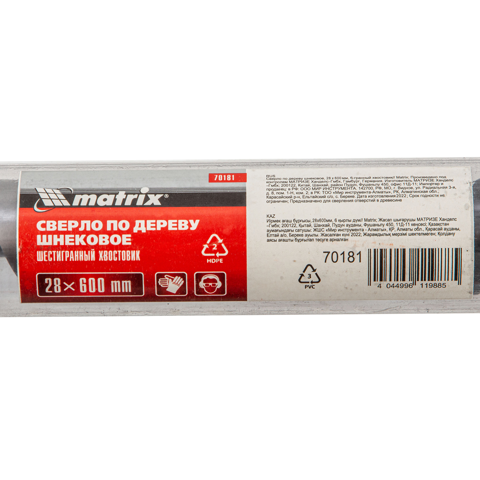 Шнековое сверло по дереву Matrix 70181 размером 28 х 600 мм, с 6-гранным хвостовиком, предназначено для получения глубоких отверстий. Подходит для работы как с мягкими, так и с твердыми породами древесины. Конструкция сверла рассчитана на интенсивное использование с высокими нагрузками в ходе строительных, ремонтных и отделочных работ.