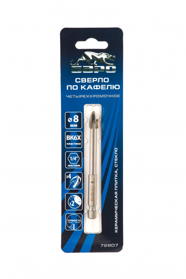 Сверло Барс 72807 диаметром 8 мм, с крестовой пластинкой и шестигранным хвостовиком, используется для сверления керамической плитки и стекла. 4-гранная режущая пластина обеспечивает высокую скорость засверливания. Сверло подходит для интенсивного профессионального использования. В процессе работы рекомендуется применять водяное охлаждение для увеличения ресурса сверла.