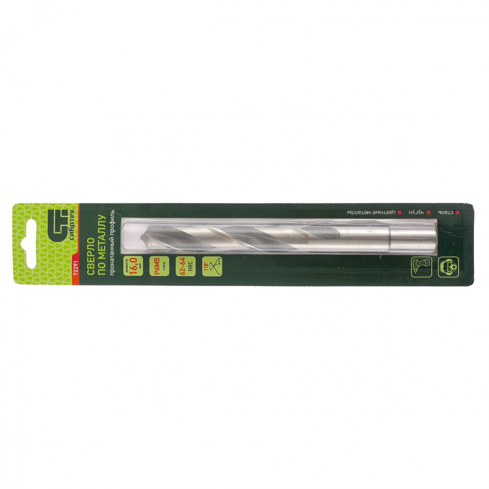 Сверло по металлу Сибртех 72291 из стали P6M5 имеет угол заточки 118 градусов и позволяет получать отверстия диаметром 16,0 мм в черных и тяжелых металлах, в том числе стали, чугуне и твердой бронзе. Сверло отличается наиболее выгодной стоимостью по сравнению с другими моделями из стали P6M5. Используется для монтажно-сборочных работ, будет полезно в быту.