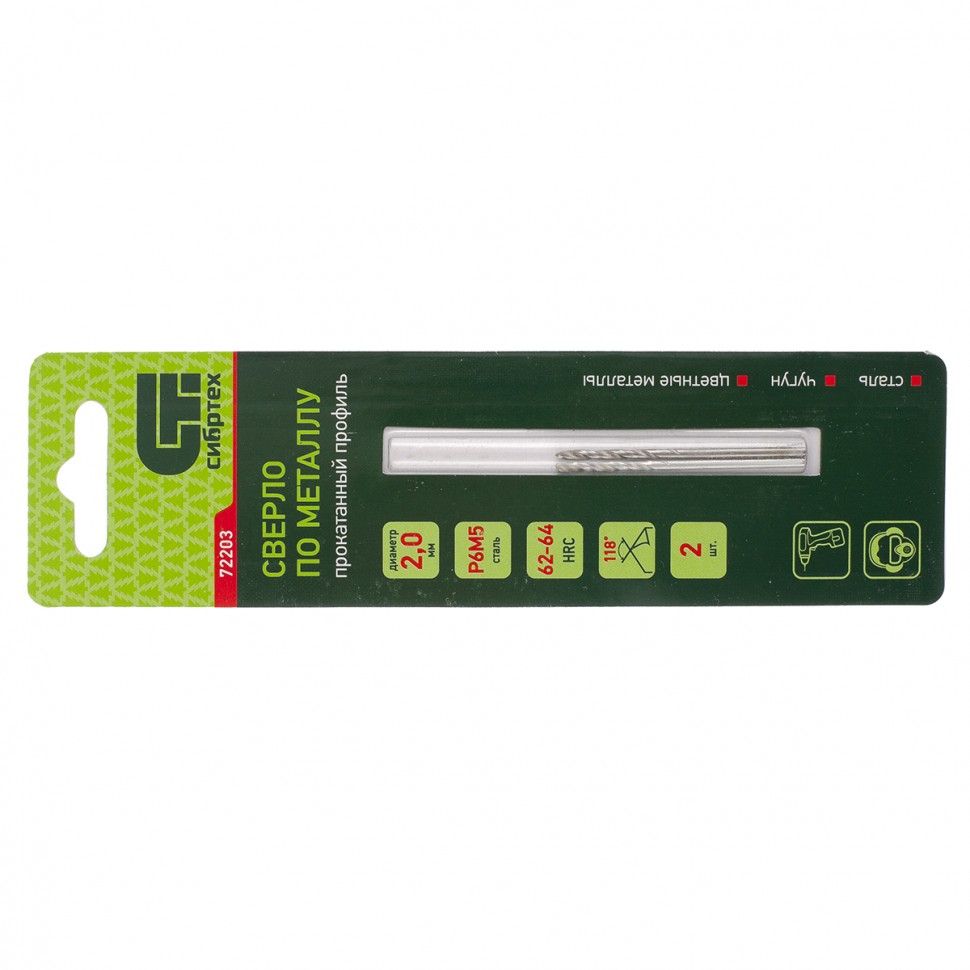 Сверло по металлу Сибртех 72203 из стали P6M5, 2 шт. в упаковке, имеет угол заточки 118 градусов и позволяет получать отверстия диаметром 2,0 мм в черных и тяжелых металлах, в том числе стали, чугуне и твердой бронзе. Сверло отличается наиболее выгодной стоимостью по сравнению с другими моделями из стали P6M5. Используется для монтажно-сборочных работ, будет полезно в быту.