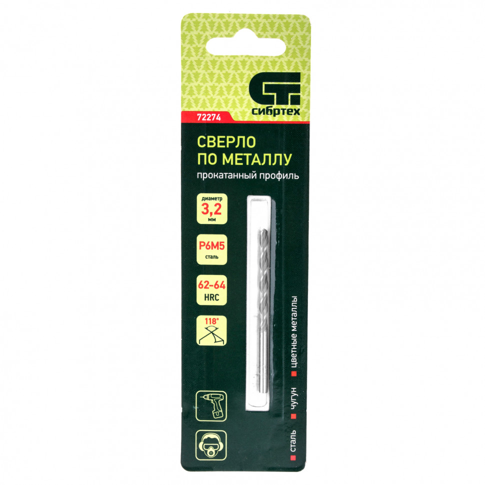 Сверло по металлу Сибртех 72274 из стали P6M5 имеет угол заточки 118 градусов и позволяет получать отверстия диаметром 3,2 мм в черных и тяжелых металлах, в том числе стали, чугуне и твердой бронзе. Сверло отличается наиболее выгодной стоимостью по сравнению с другими моделями из стали P6M5. Используется для монтажно-сборочных работ, будет полезно в быту.