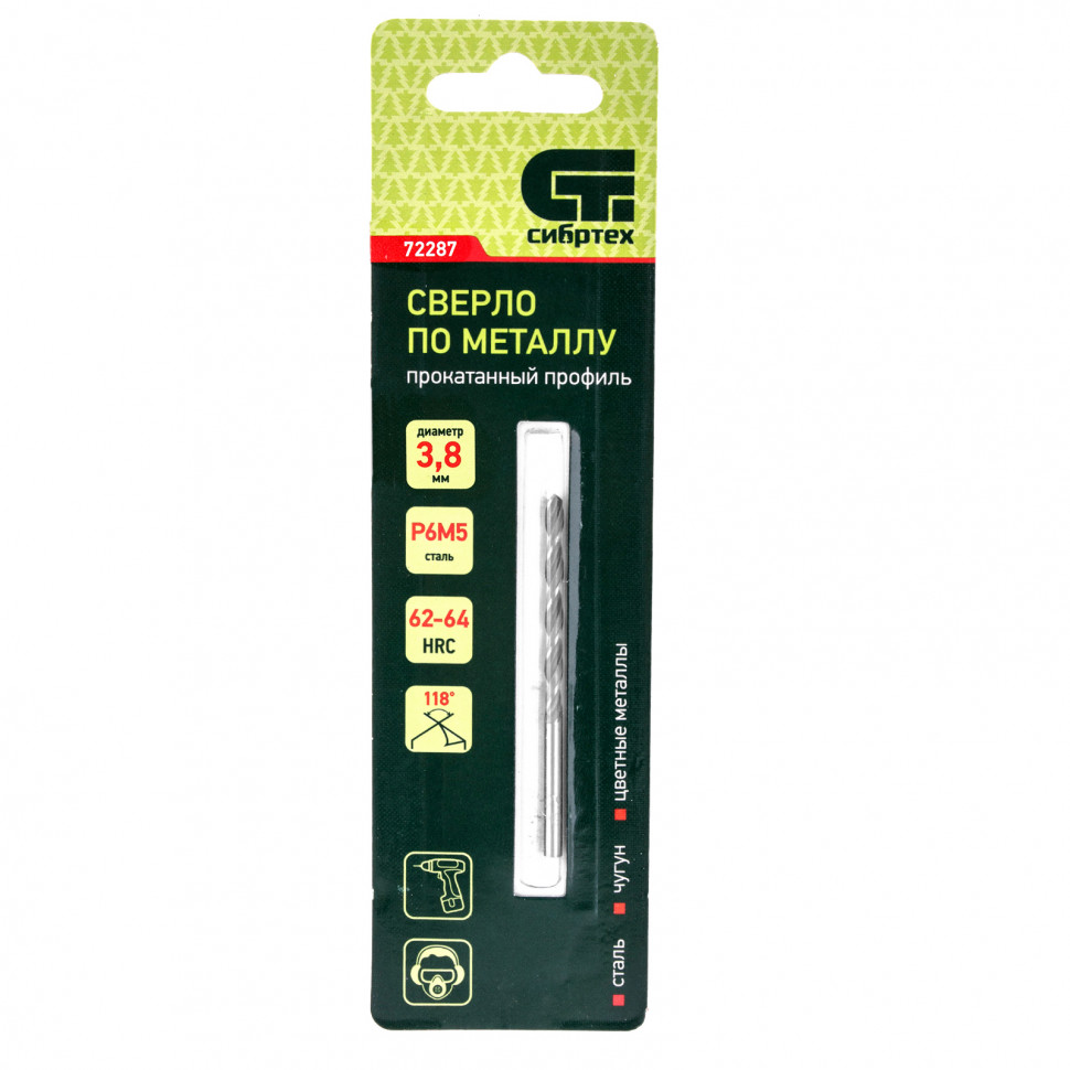 Сверло по металлу Сибртех 72287 из стали P6M5 имеет угол заточки 118 градусов и позволяет получать отверстия диаметром 3,8 мм в черных и тяжелых металлах, в том числе стали, чугуне и твердой бронзе. Сверло отличается наиболее выгодной стоимостью по сравнению с другими моделями из стали P6M5. Используется для монтажно-сборочных работ, будет полезно в быту.