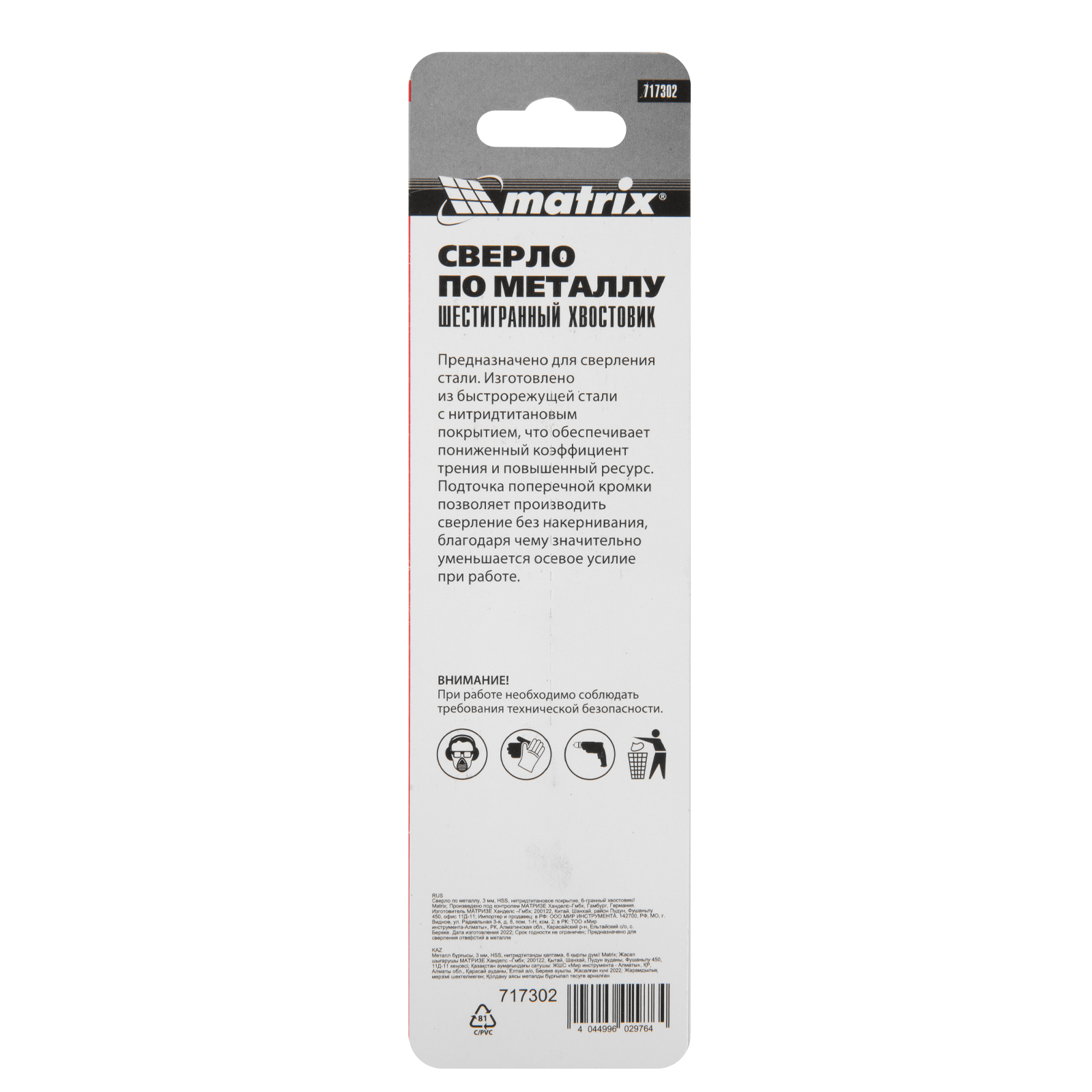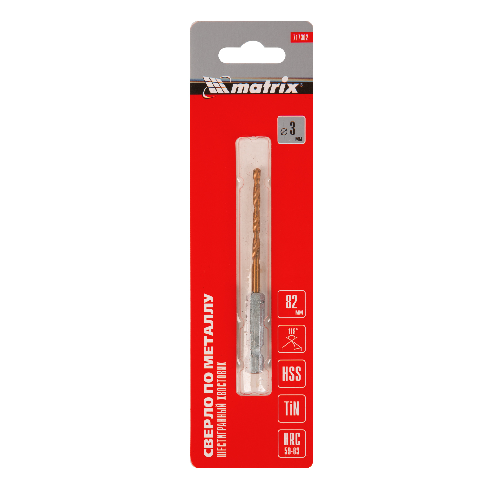 Сверло по металлу Matrix 717302 диаметром 3 мм, из стали HSS, с нитридтитановым покрытием и 6-гранным хвостовиком, предназначено для получения отверстий в черном металле, стали, чугуне и твердой бронзе. Устанавливается в патрон дрели.