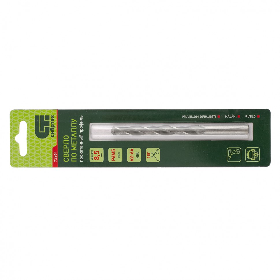 Сверло по металлу Сибртех 72261 из стали P6M5 имеет угол заточки 118 градусов и позволяет получать отверстия диаметром 8,5 мм в черных и тяжелых металлах, в том числе стали, чугуне и твердой бронзе. Сверло отличается наиболее выгодной стоимостью по сравнению с другими моделями из стали P6M5. Используется для монтажно-сборочных работ, будет полезно в быту.