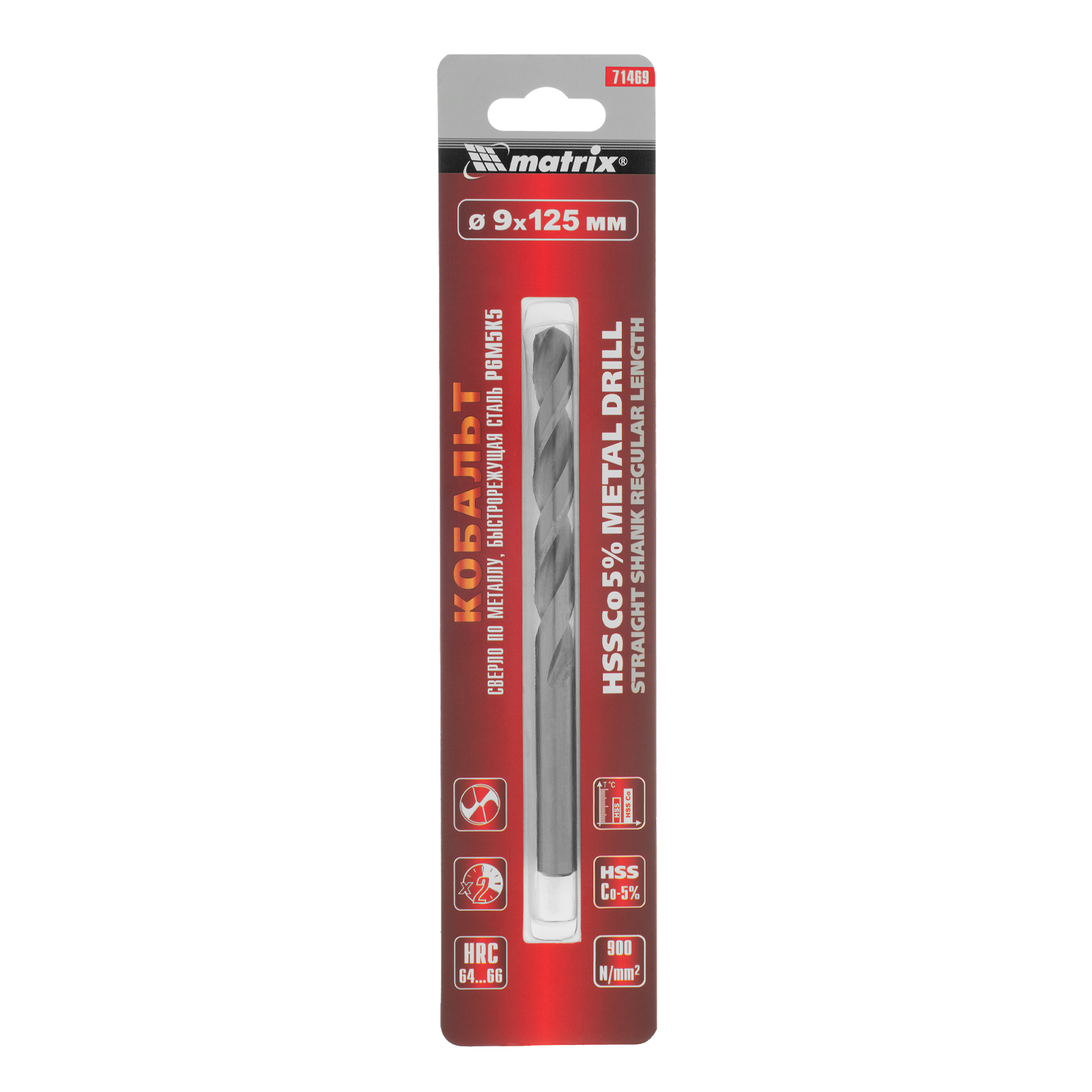 Сверло Matrix 71469 диаметром 9 мм, из стали HSS Co-5%, имеет угол заточки 135 градусов, оптимальный для сверления легированных и цветных металлов. Подходит для профессионального использования на строительной площадке.