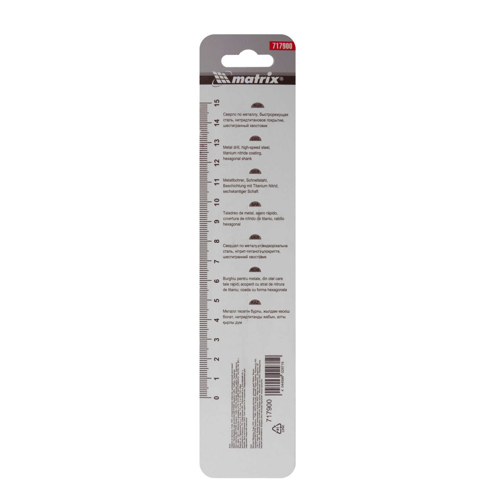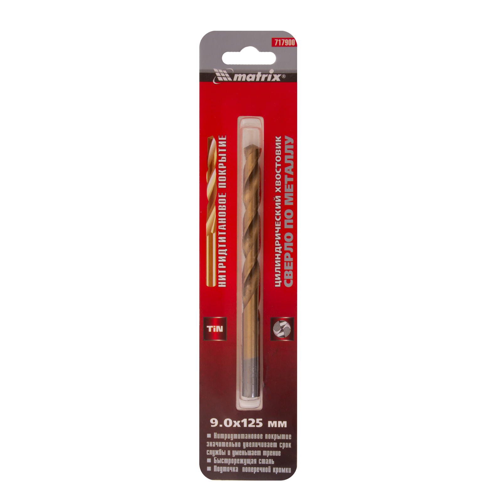 Сверло Matrix 717900 диаметром 9 мм, из стали HSS, с нитридтитановым покрытием и цилиндрическим хвостовиком, предназначено для получения отверстий в металле. Угол заточки 118° оптимален для работы с черными металлами, сталью, чугуном и твердой бронзой. Сверло выдерживает интенсивные нагрузки и подходит для профессионального использования.