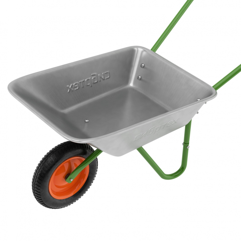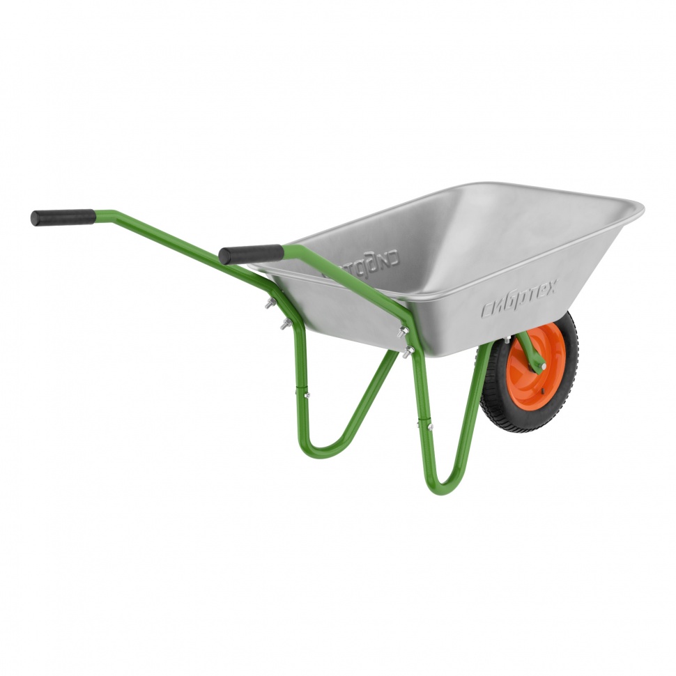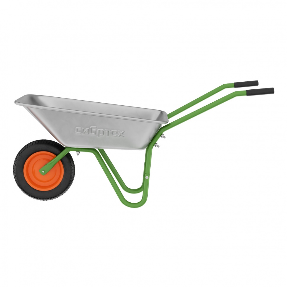 Садовая тачка Сибртех 689144 с объемом кузова 65 л и грузоподъемностью 90 кг предназначена для транспортировки опавших листьев, веток, мусора и других грузов. Толщина стенок корыта составляет 0,6 мм, диаметр трубы рамы — 25 мм, а толщина ее стенок — 1,5 мм, поэтому тачка успешно справляется со своими функциями. Изделие пригодится для поддержания порядка на загородном участке.