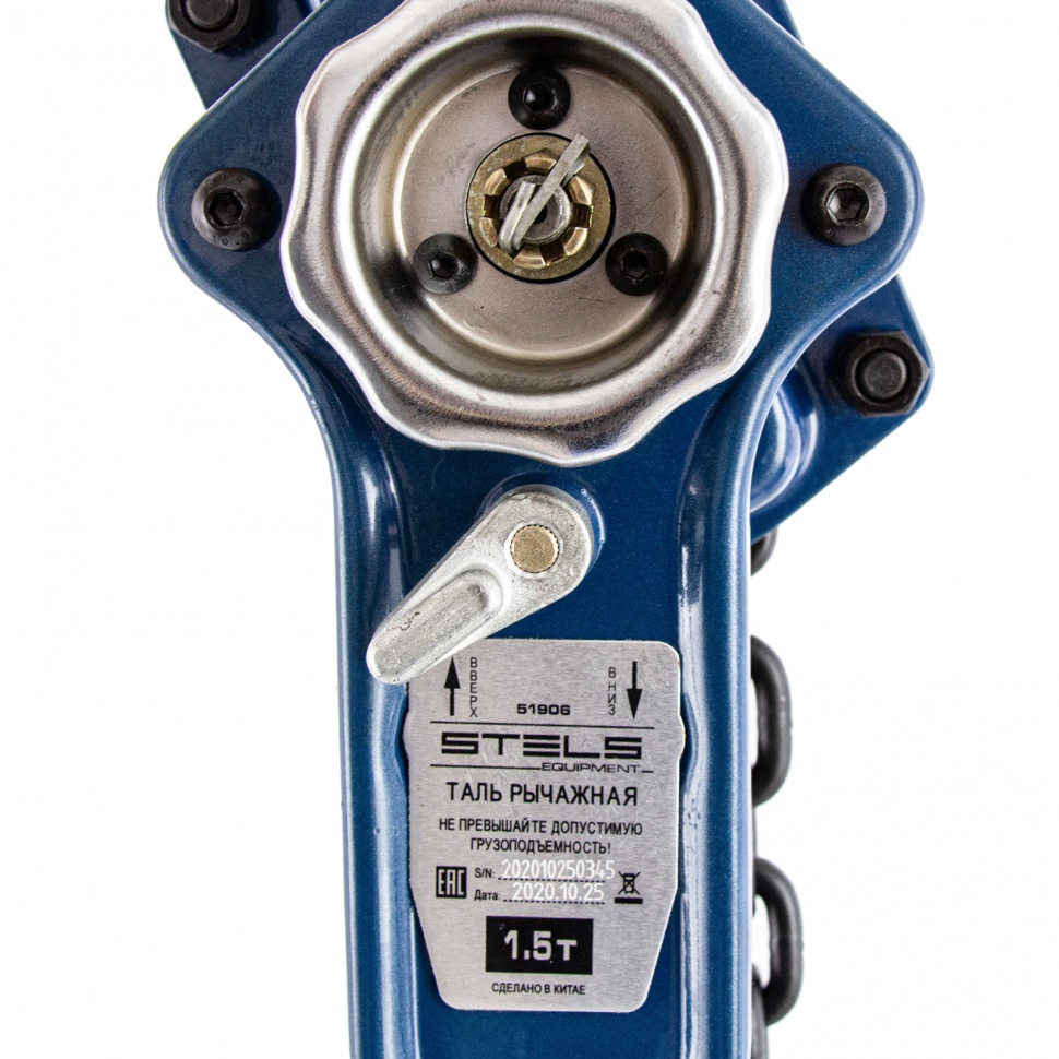 Цепная рычажная таль Stels 51906 используется для поднятия грузов массой не более 1,5 т на высоту до 1,5 м. Рычажный механизм не требует больших усилий от пользователя. Таль пригодится в автосервисе, на складе или производстве, а также в других местах, где требуется подъем тяжестей без использования электричества.