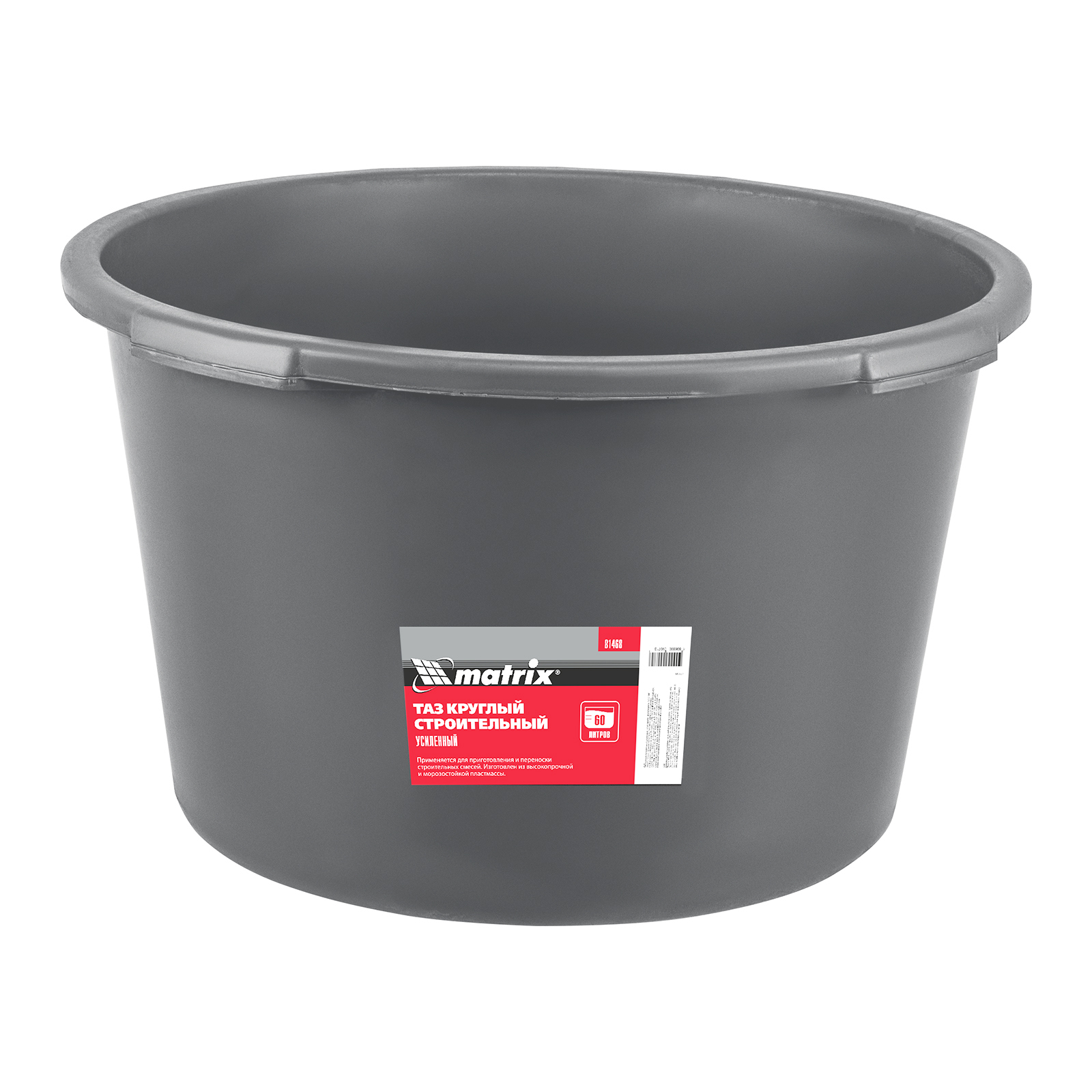 Таз круглый строительный усиленный Matrix 81468 объемом 60 л предназначен для замешивания строительных растворов любого типа при проведении ремонтно-отделочных работ. Благодаря диаметру 557 мм для приготовления смеси удобно использовать различный отделочный инструмент (шпатели, кисти). Пригодится такой таз и в быту: он удобен для хранения сыпучих материалов, сбора и утилизации мусора, проведения влажной уборки.