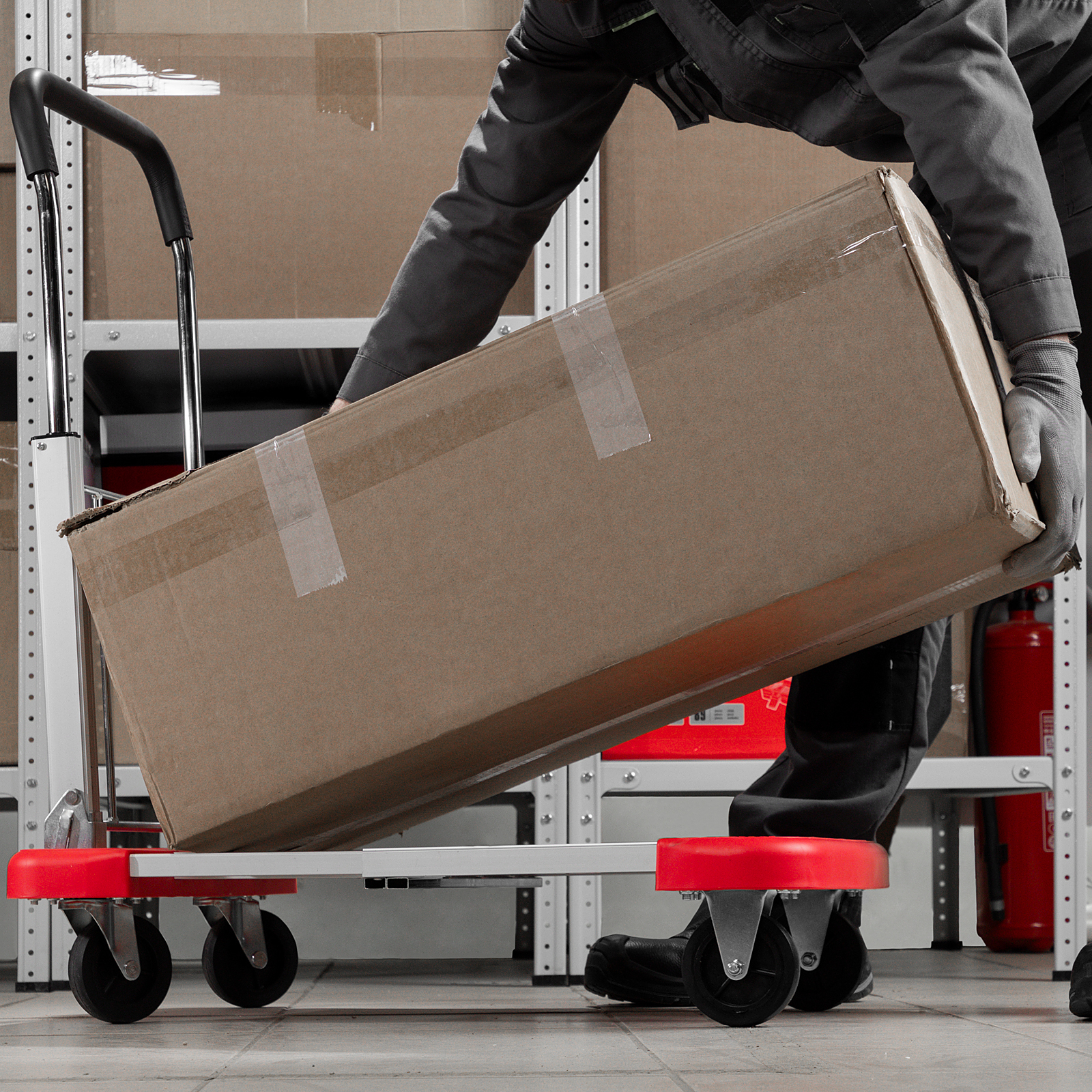 - Удобное хранение и транспортировка — благодаря телескопической платформе тележка не занимает много места.