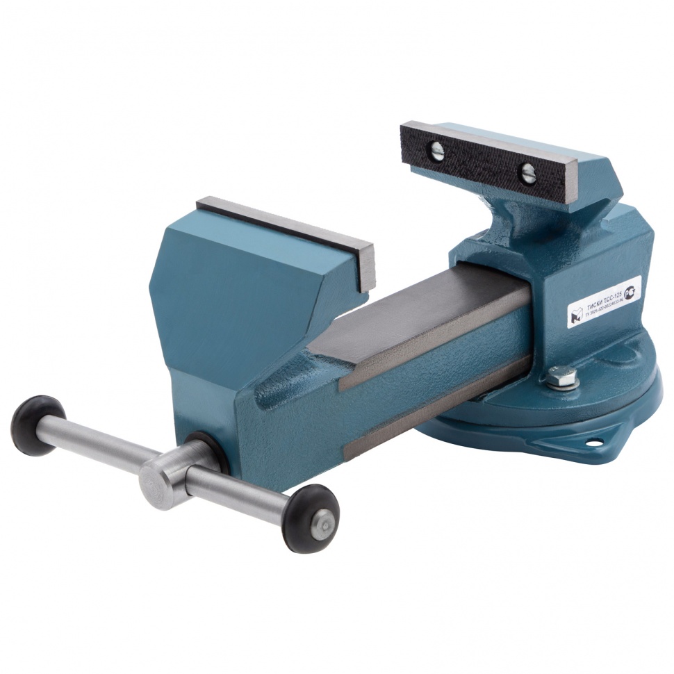 Поворотные слесарные тиски 18665 с губками шириной 125 мм используются для надежной фиксации заготовок. Помогают просверлить отверстия в деталях, выполнить шлифовку и другие столярные и слесарные работы. Тиски с рабочим ходом 160 мм позволяют удерживать крупные заготовки.