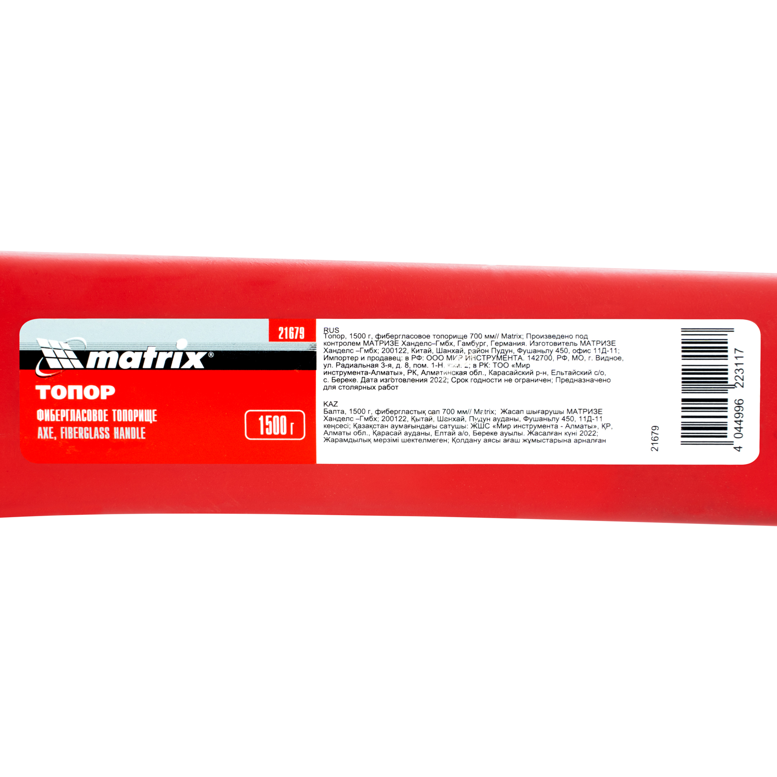 Топор Matrix 21679 длиной 700 мм, с полотном массой 1500 г и фибергласовым топорищем, предназначен для рубки и тесания древесины любых пород. Полукруглая кромка легко врезается в материал, обеспечивая эффективность работы. Топор используется для выполнения плотницких работ, будет полезен на даче и в мастерской.