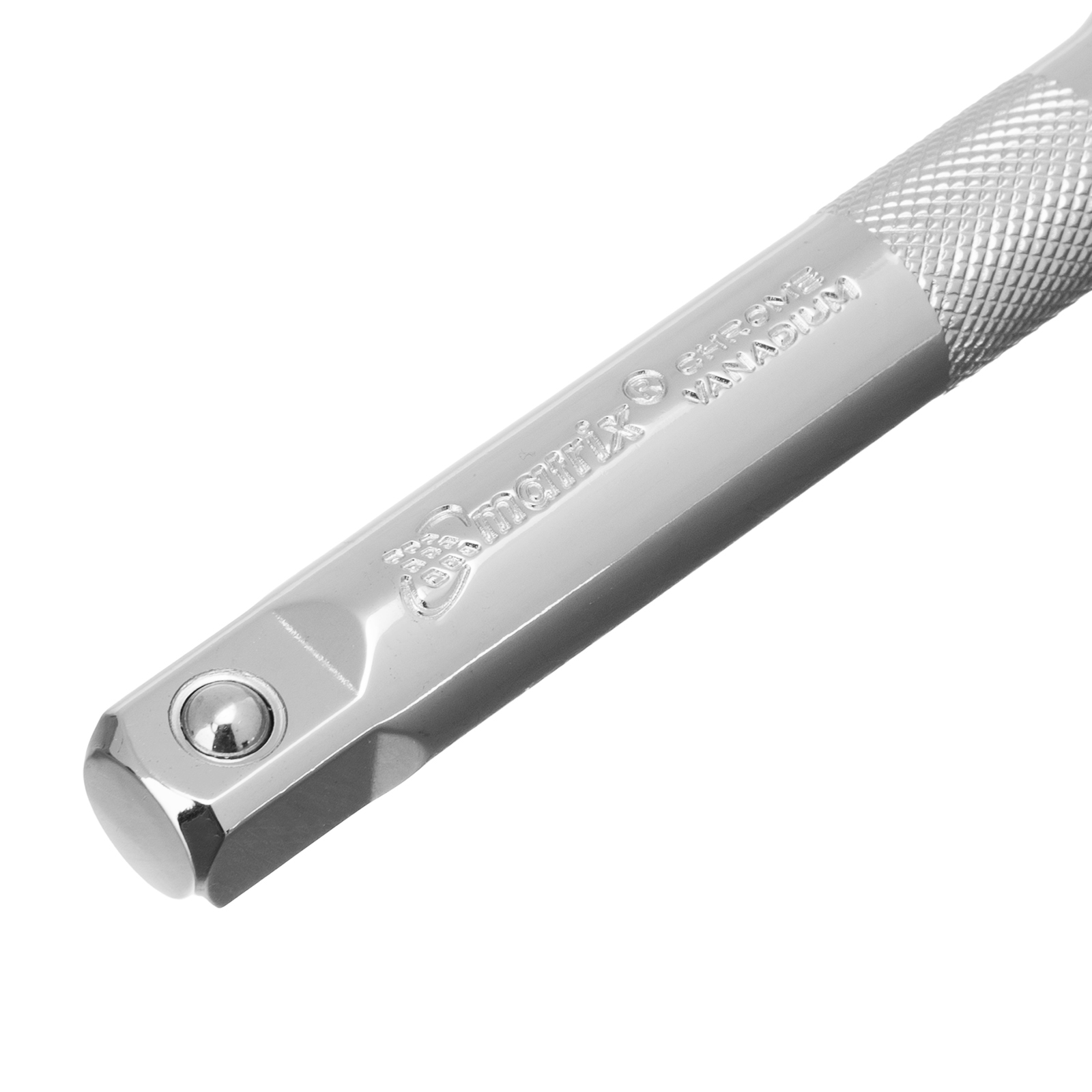 Удлинитель Matrix 13972 с присоединительным квадратом 1/2", длиной 125 мм, из стали CrV, с покрытием «полированный хром», облегчает монтаж и демонтаж резьбового крепежа в узких и углубленных местах. Позволяет присоединить карданный шарнир, торцевую головку и другие насадки с посадочным размером 1/2". Удлинитель будет полезен в слесарной и авторемонтной мастерской.