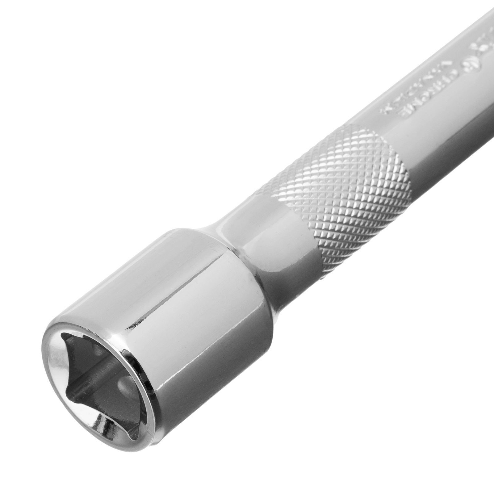 - Прочность — удлинитель из хромованадиевой стали устойчив к высоким нагрузкам.