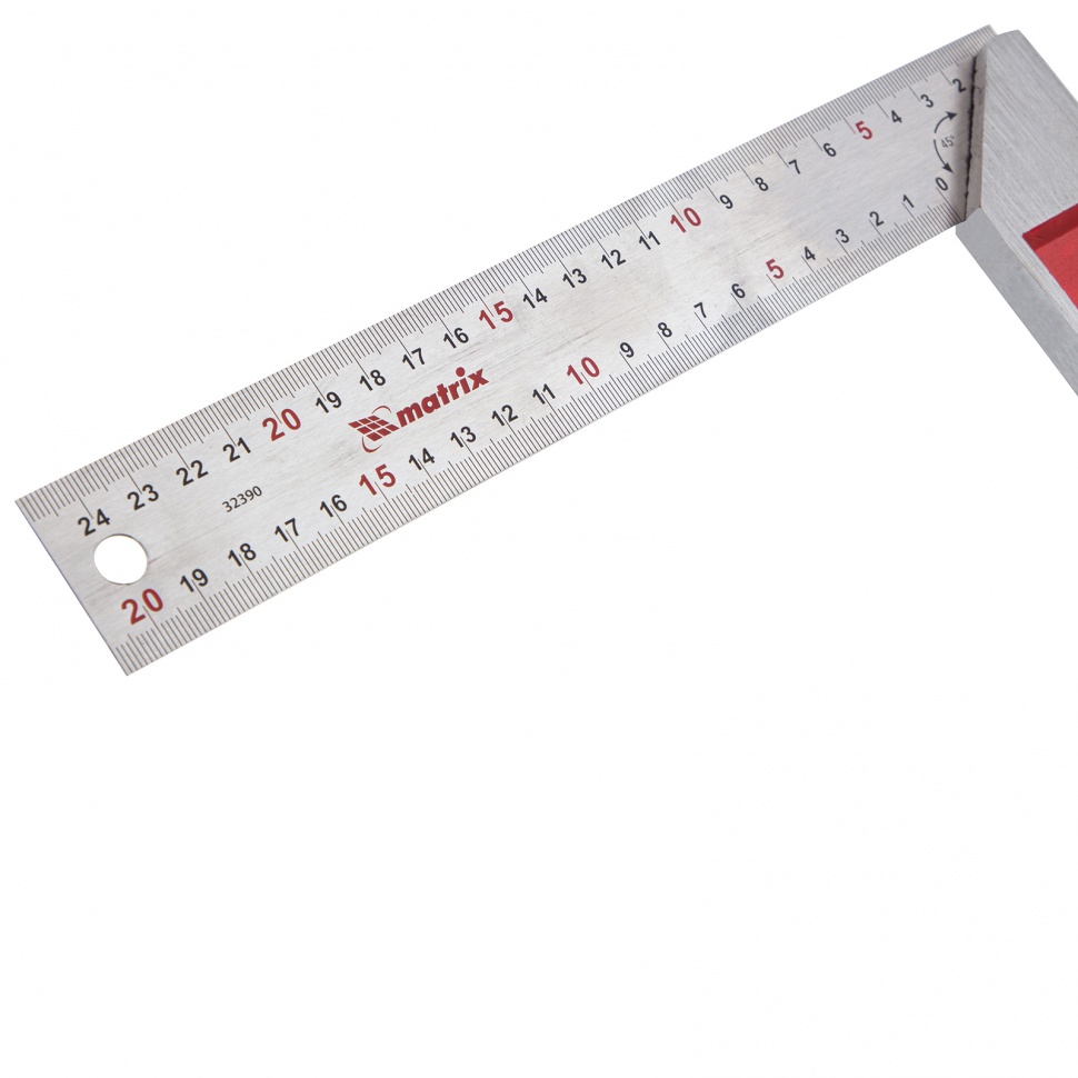 Стальной угольник Matrix 32390 длиной 250 мм, с градуировкой, — измерительный инструмент для построения и контроля углов. Будет полезен для проведения столярных и строительных работ.