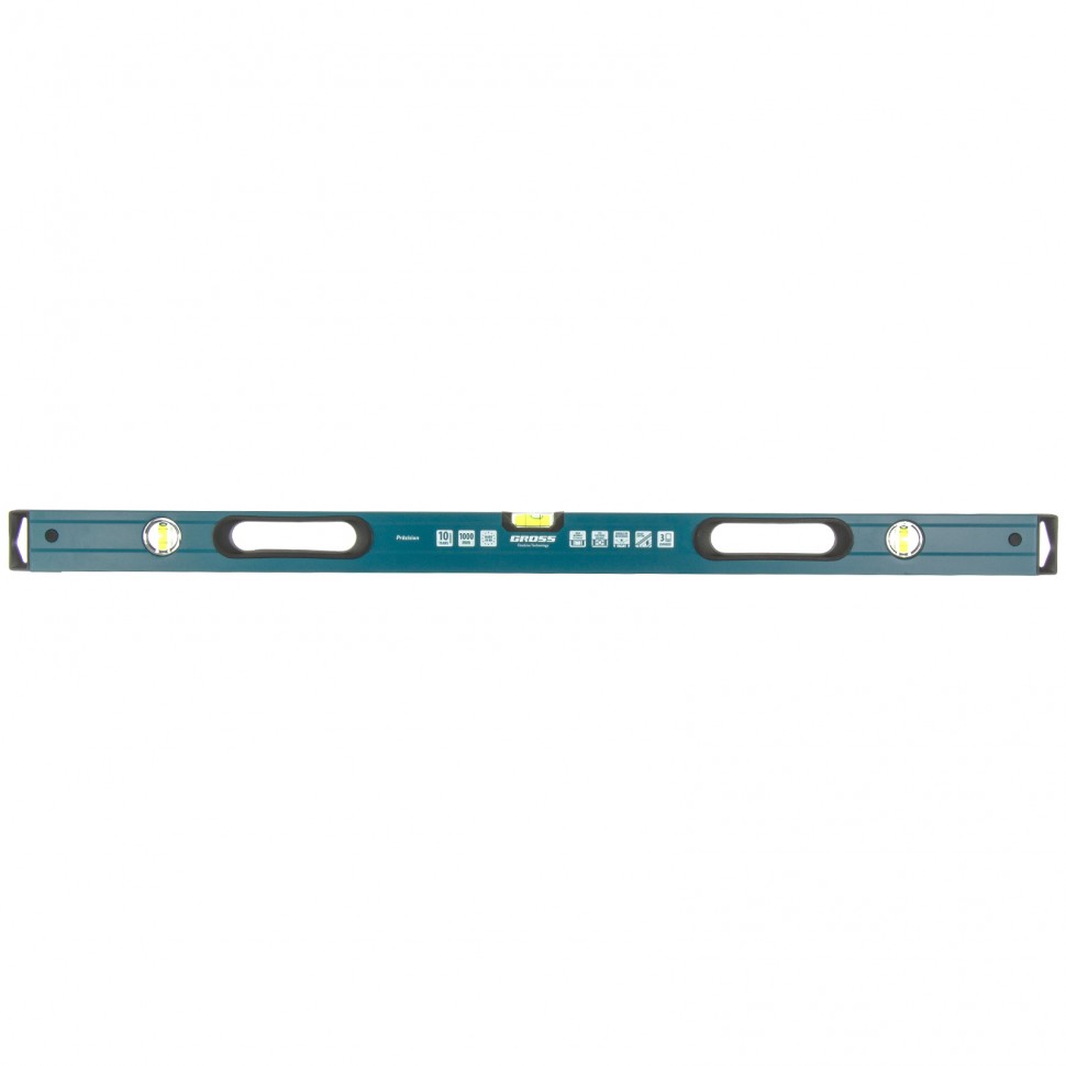 Уровень алюминиевый Gross Prazision 34443 длиной 1200 мм, с 2 рукоятками и 3 глазками, прошедший фрезеровку, будет полезен для проведения монтажных, строительных и ремонтных работ. С его помощью можно проверить наличие отклонений поверхностей от вертикали и горизонтали.