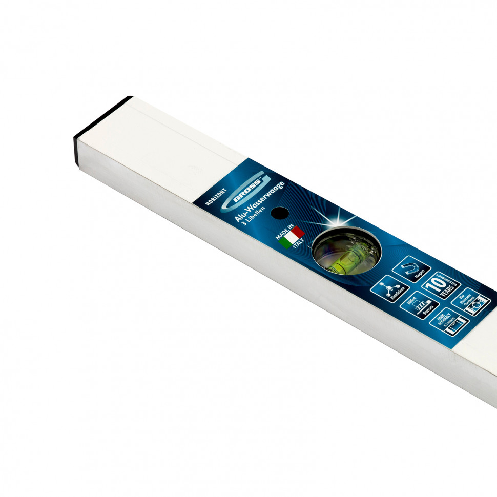 Уровень алюминиевый фрезерованный Gross 33674 длиной 1200 мм, магнитный, с 3 глазками, — незаменимый инструмент в быту и на строительной площадке. Позволяет выявить погрешности измерений, отклонения от заданной вертикали и горизонтали.