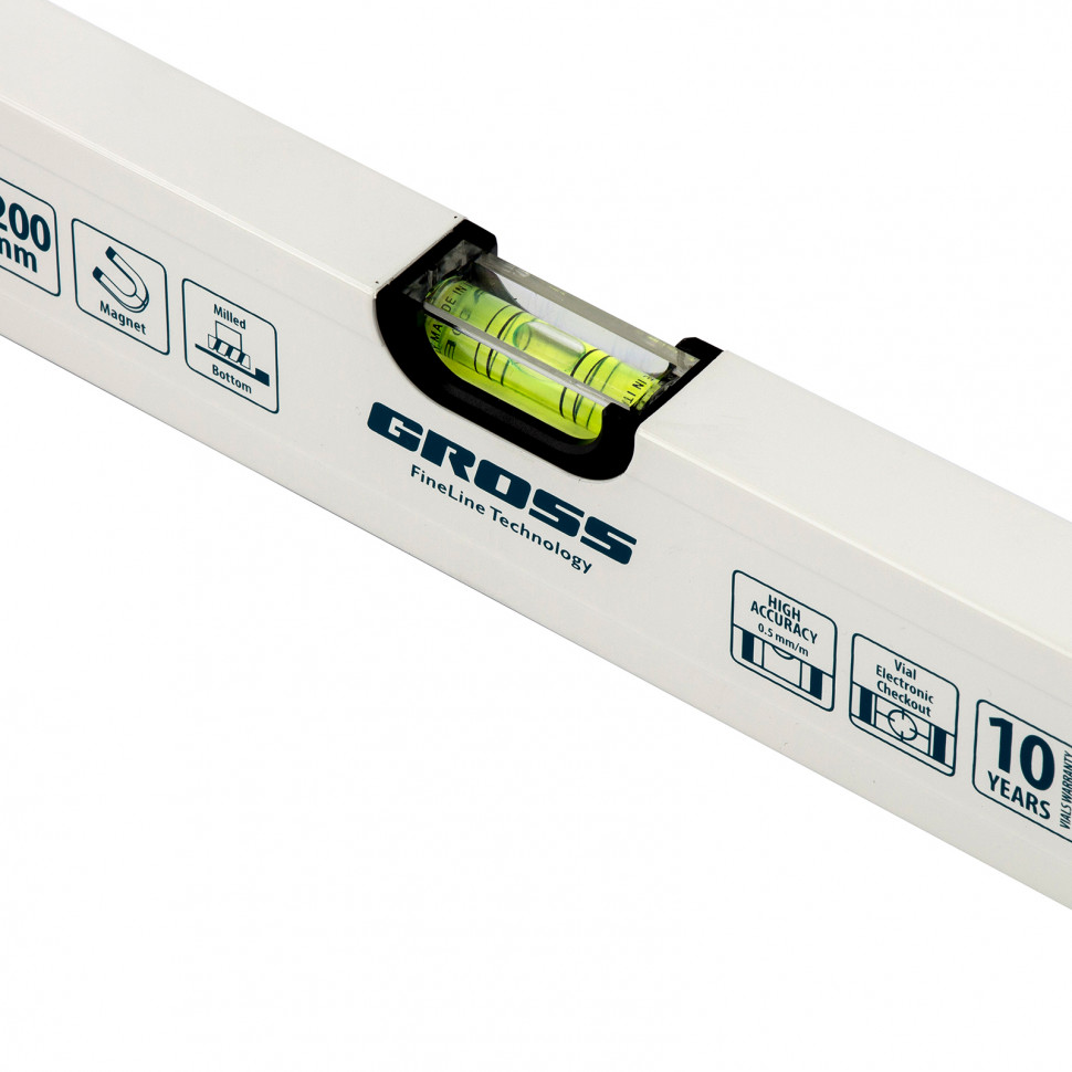 - Погрешность 05 мм/м — базовая поверхность уровня фрезерована, пузырьковые ампулы установлены с электронным контролем точности.
