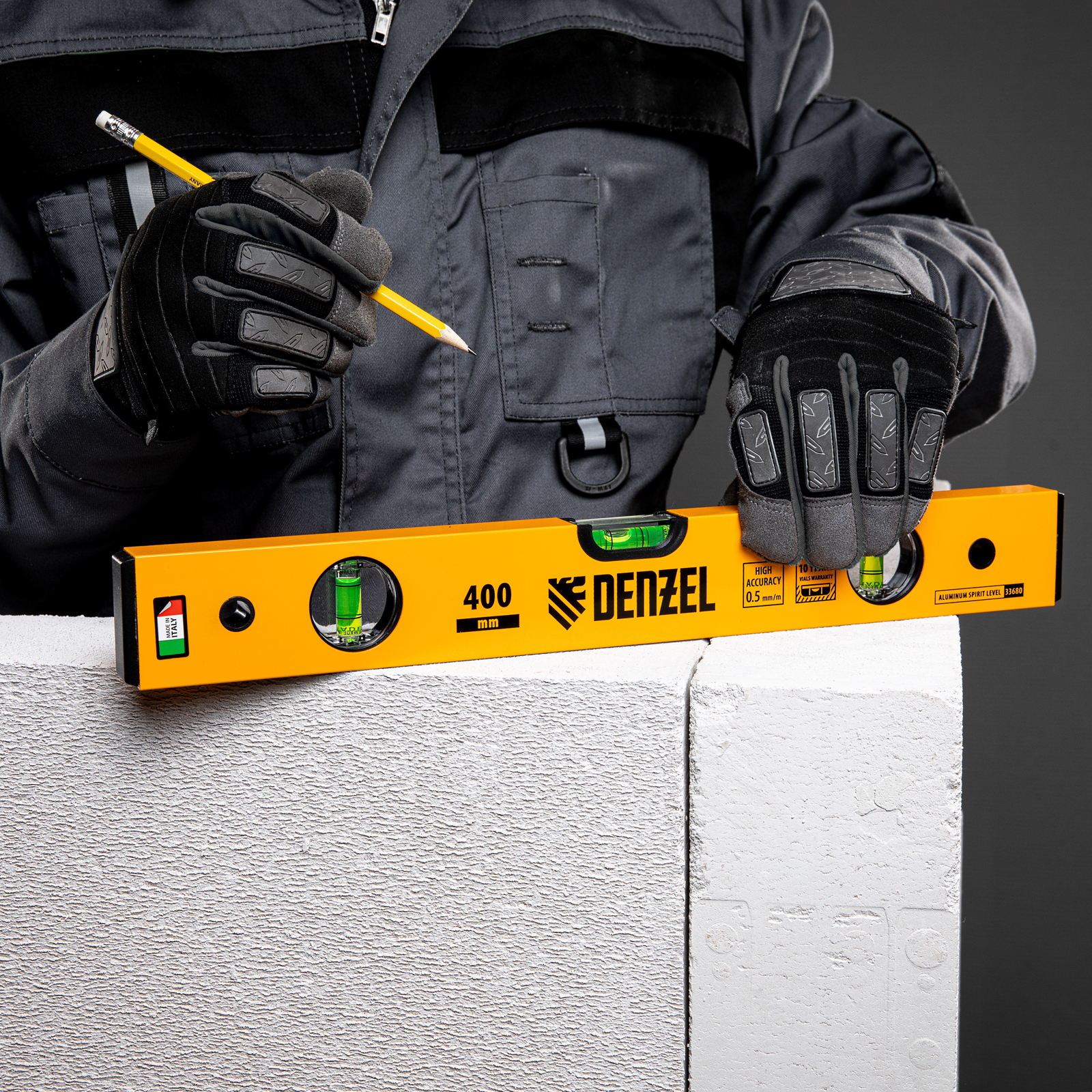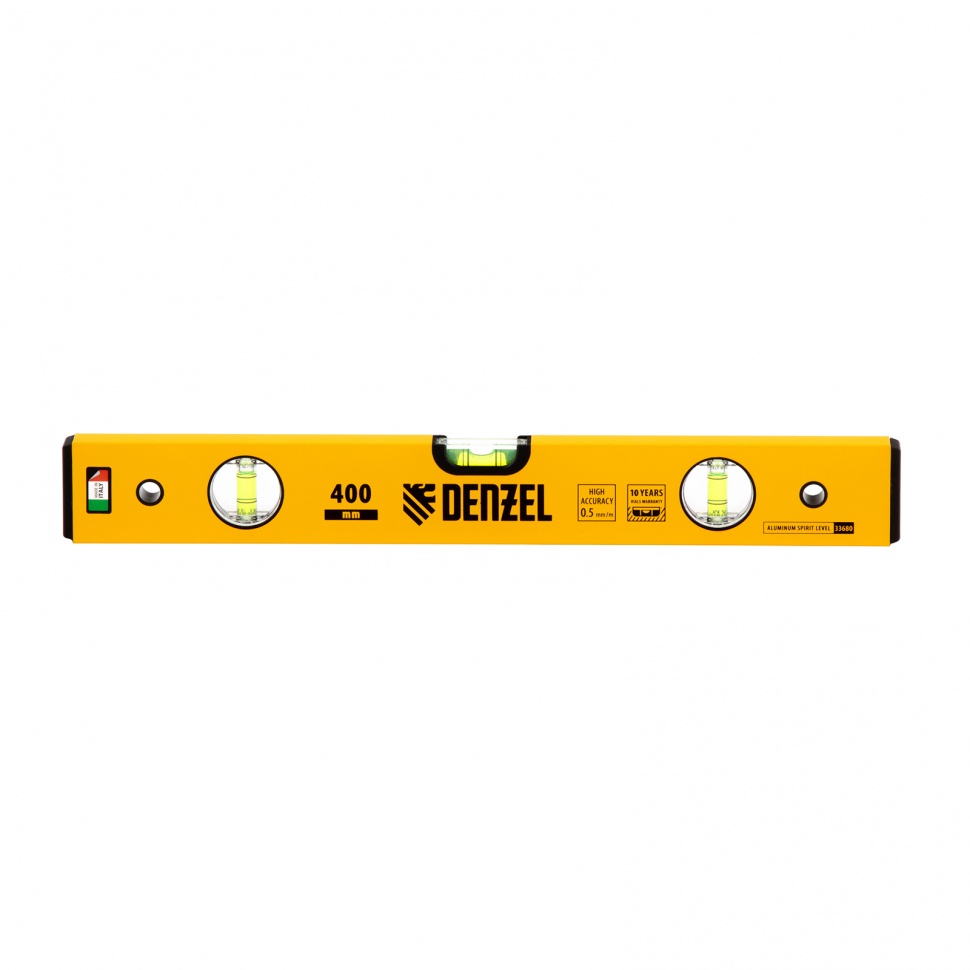 Алюминиевый фрезерованный уровень Denzel 33680 длиной 400 мм, с 3 глазками, используется для контроля вертикальных и горизонтальных плоскостей. Позволяет получить качественный результат при выполнении строительных и отделочных работ.