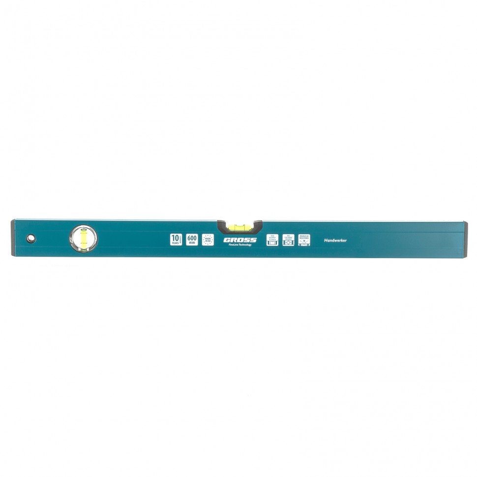 Уровень алюминиевый Gross Handwerker 33901 длиной 600 мм снабжен 2 глазками для проверки отклонений от вертикали или горизонтали. Станет незаменимым инструментом на строительной площадке и в быту, когда необходима высокая точность работы.
