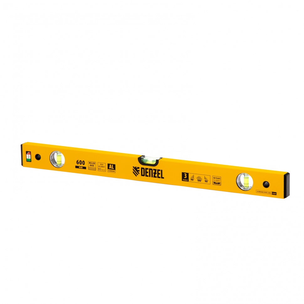 Алюминиевый фрезерованный уровень Denzel 33681 длиной 600 мм, с 3 глазками, используется для контроля вертикальных и горизонтальных плоскостей. Позволяет получить качественный результат при выполнении строительных и отделочных работ.