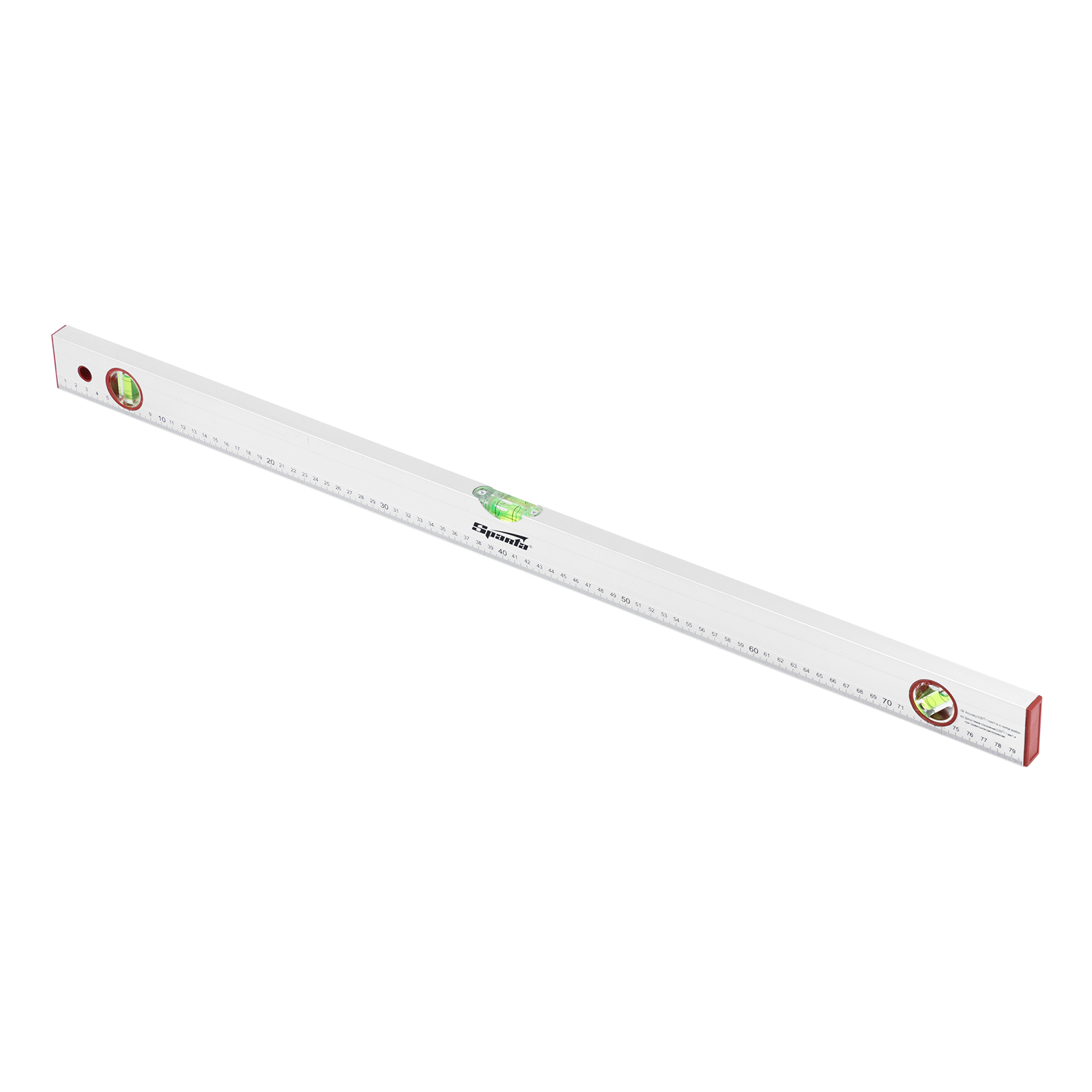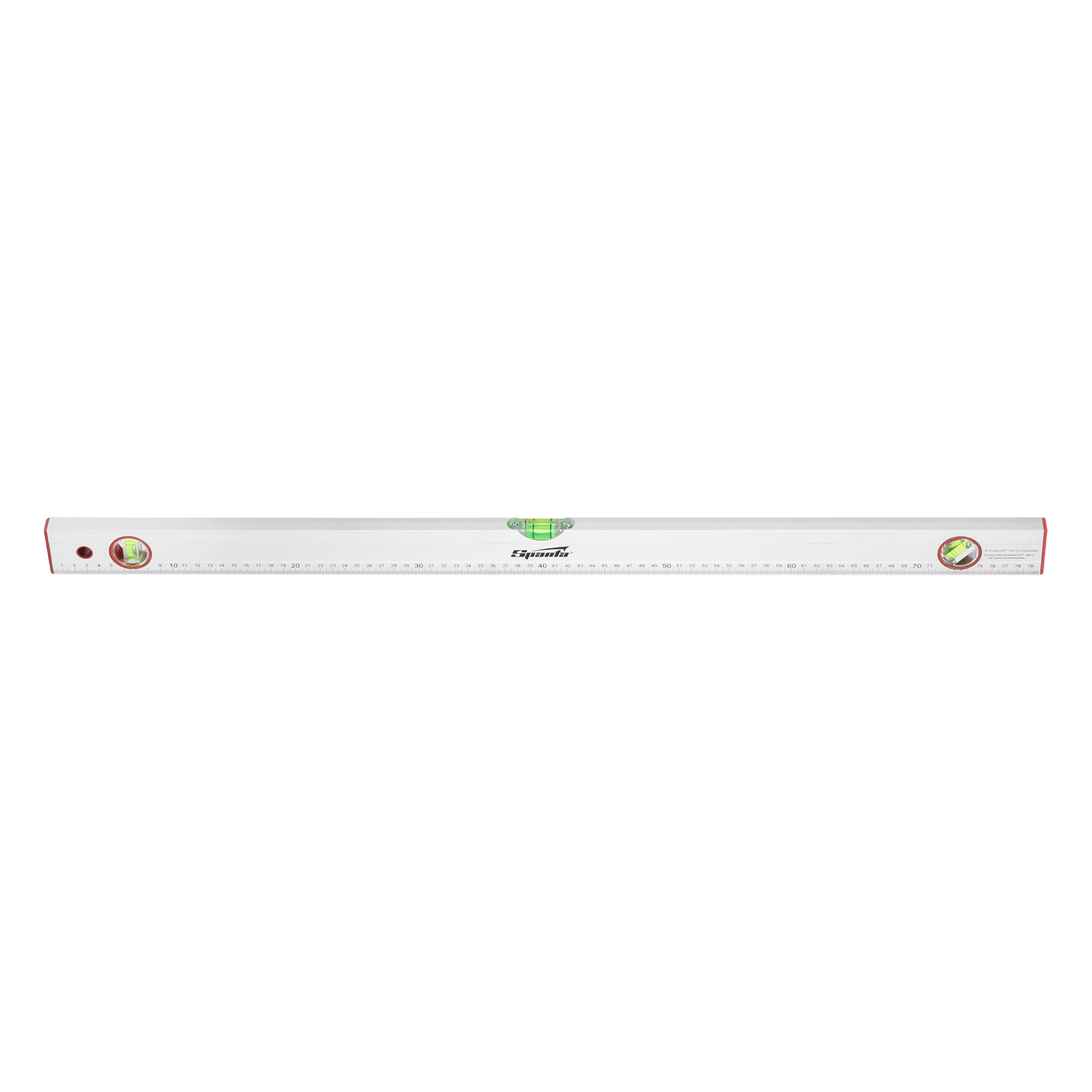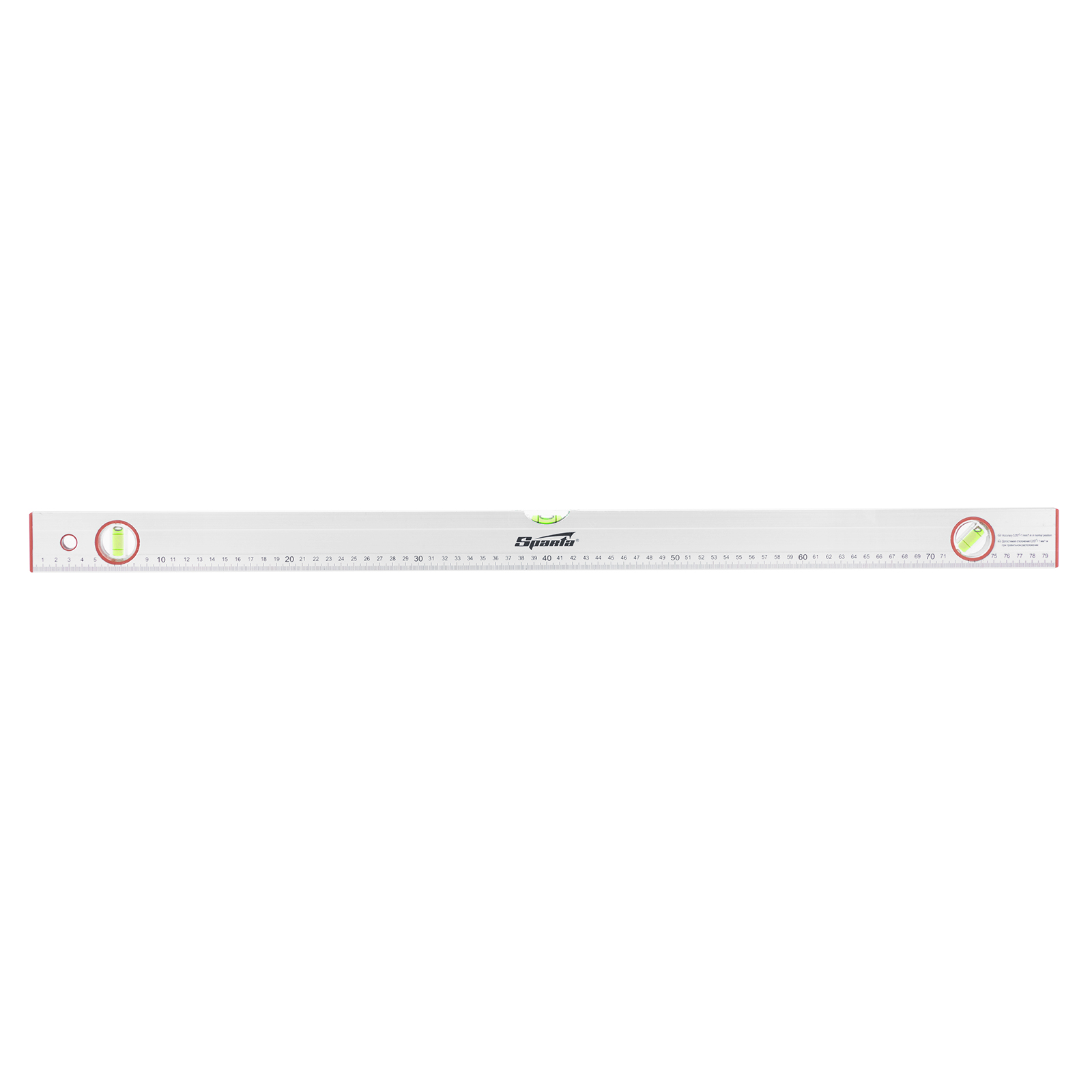 Алюминиевый уровень Sparta 331265 длиной 800 мм, с 3 глазками и линейкой, используется на строительной площадке и во время ремонта. Повышает точность выполнения облицовочных, отделочных и других работ, позволяя проверить отклонения по горизонтали и вертикали, измерить угол наклона, выровнять поверхности и предметы.