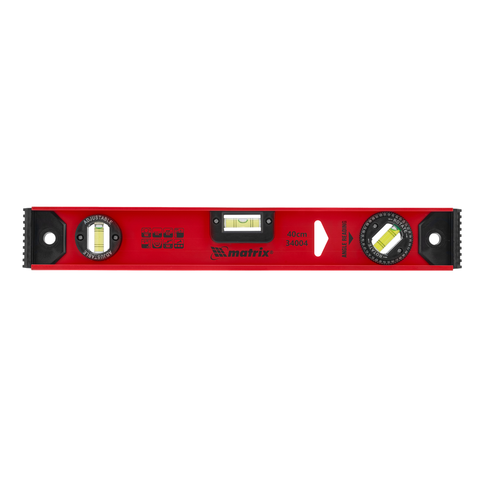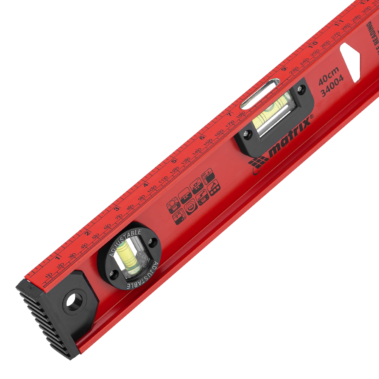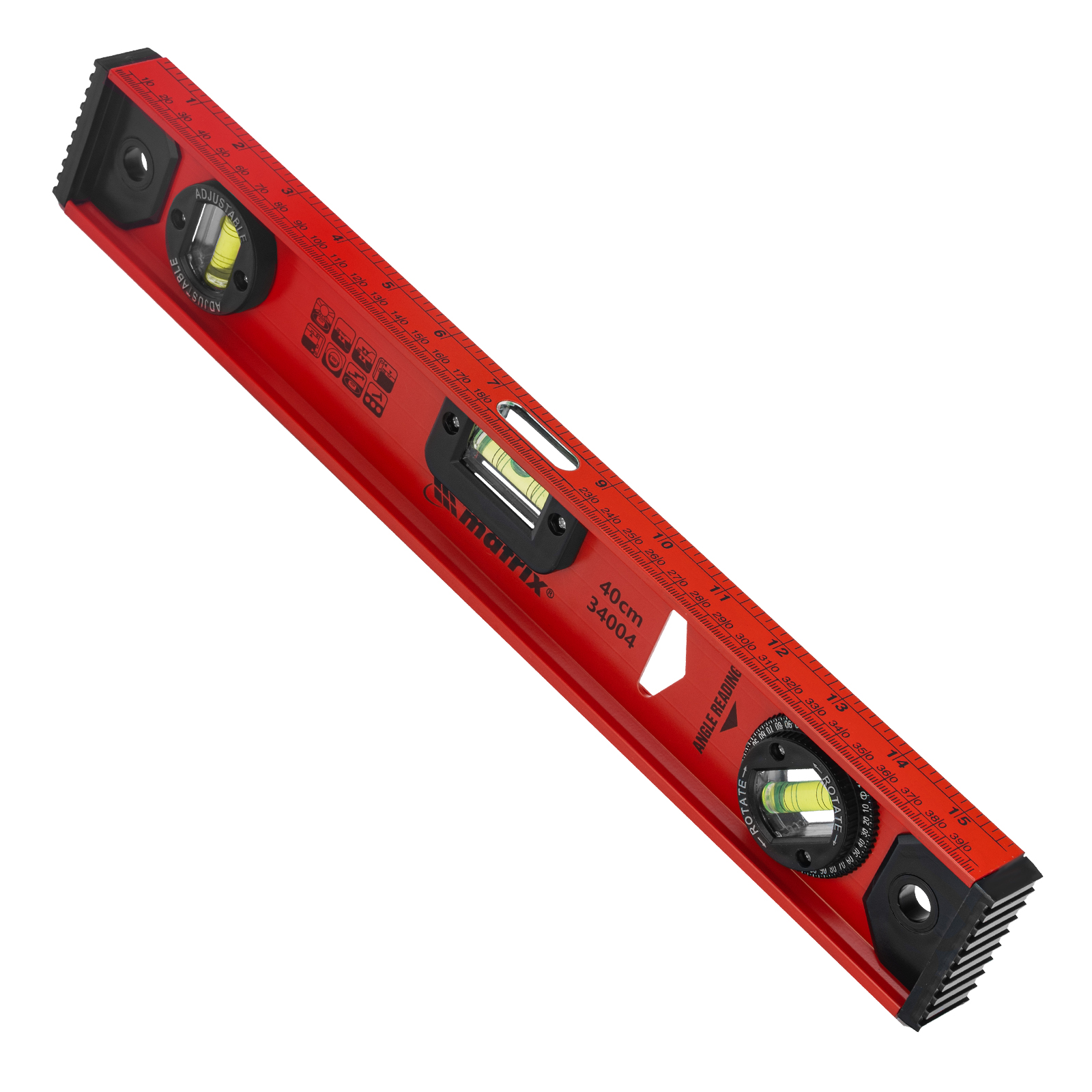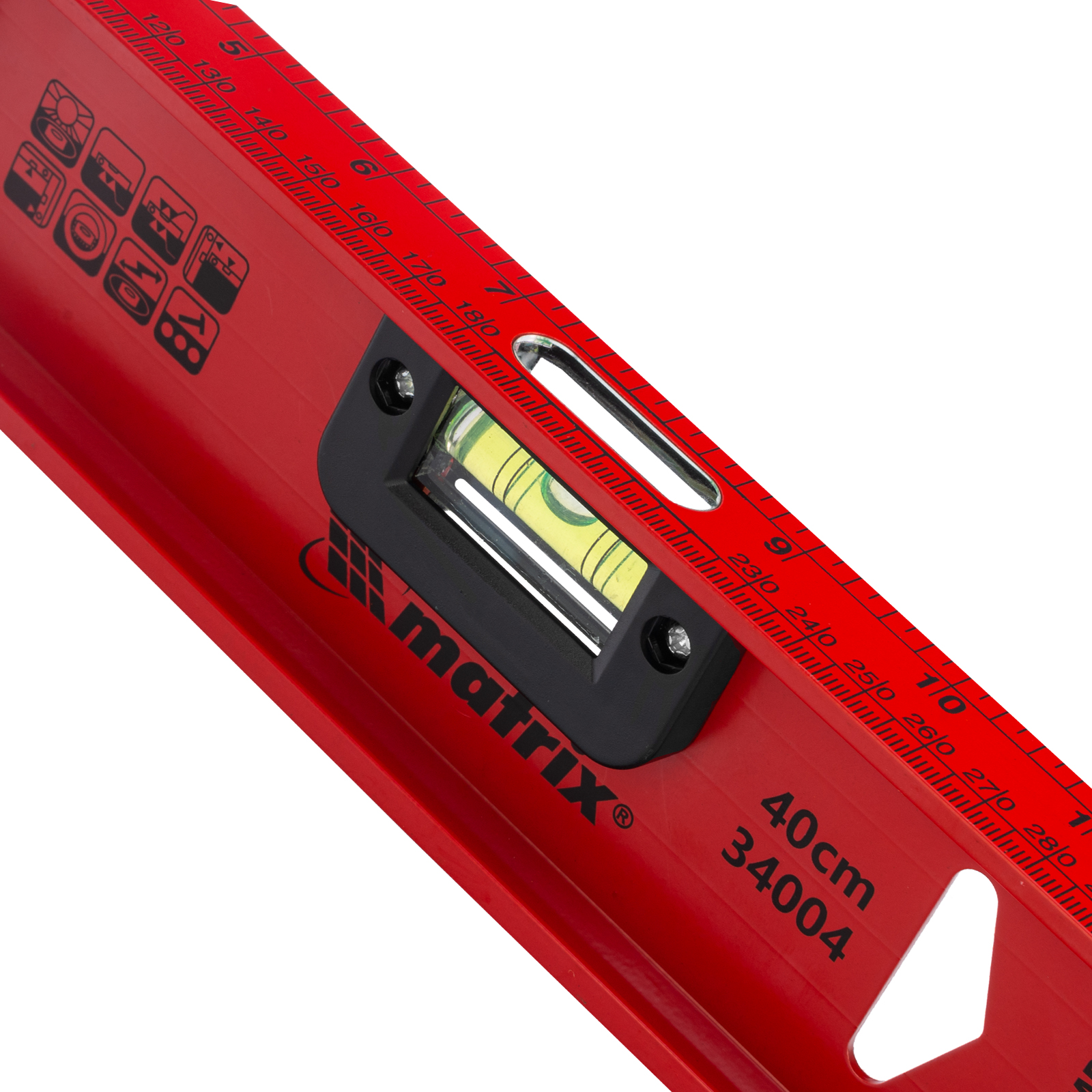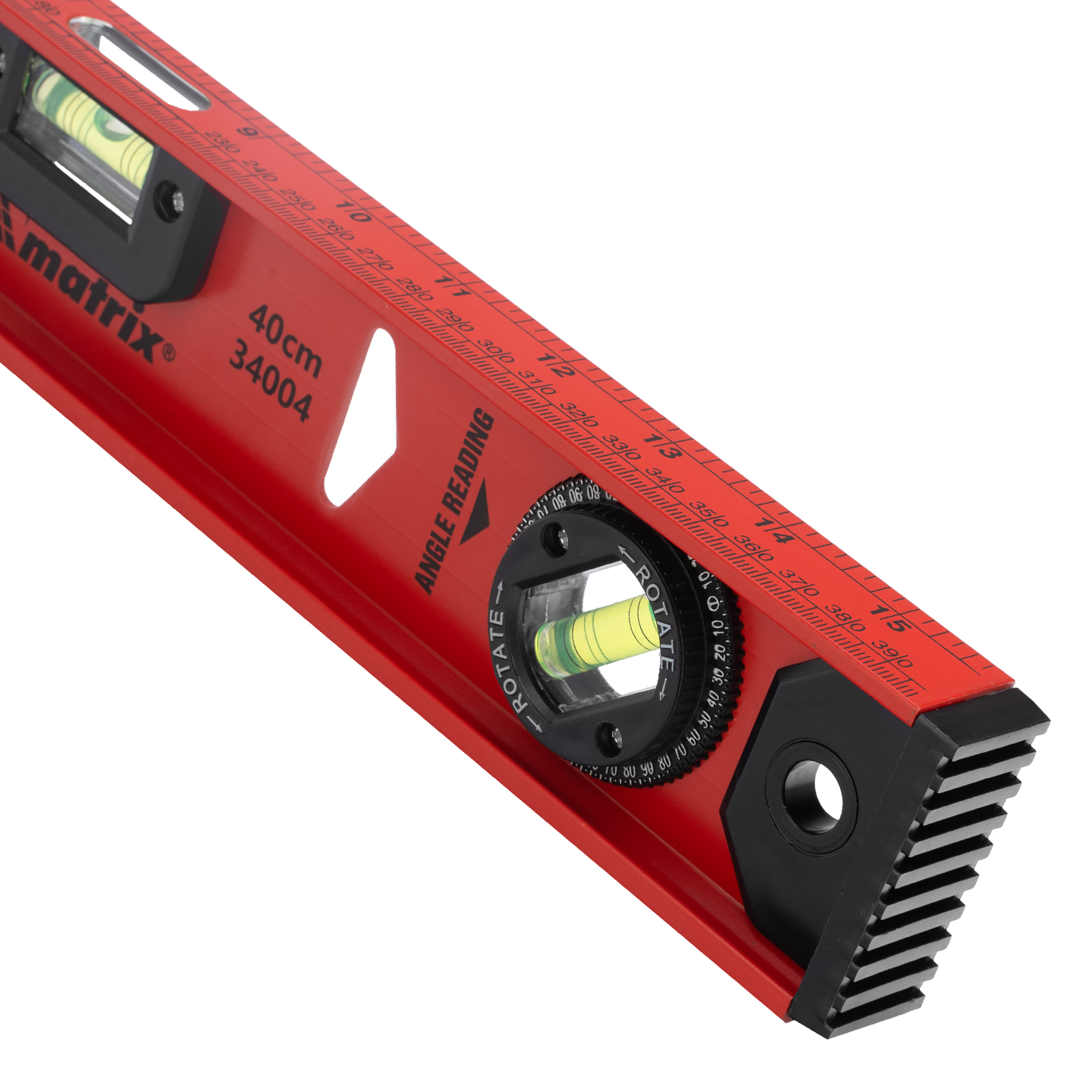 Уровень алюминиевый усиленный Matrix «Рельс» 34004 длиной 400 мм снабжен 3 глазками для проверки отклонений относительно горизонтальной и вертикальной плоскостей. Поворотный глазок уровня позволяет выстроить произвольный угол. Инструмент пригодится строителю, отделочнику, бетонщику и другим специалистам.