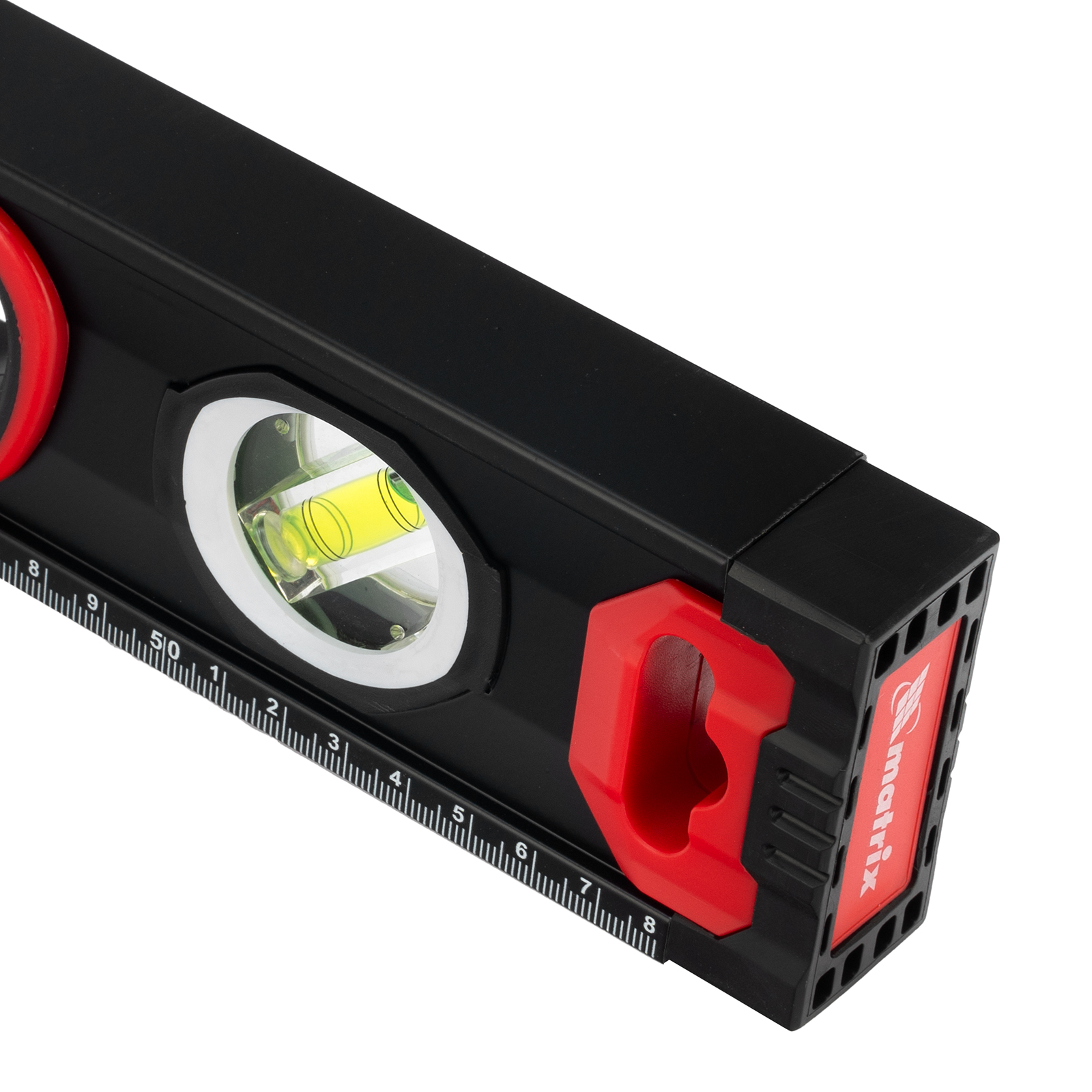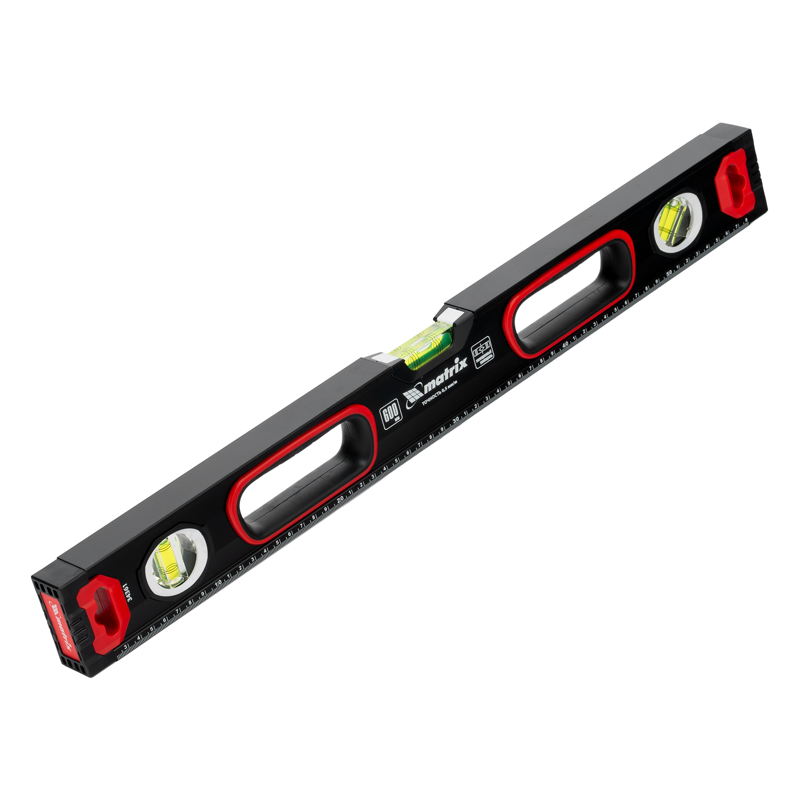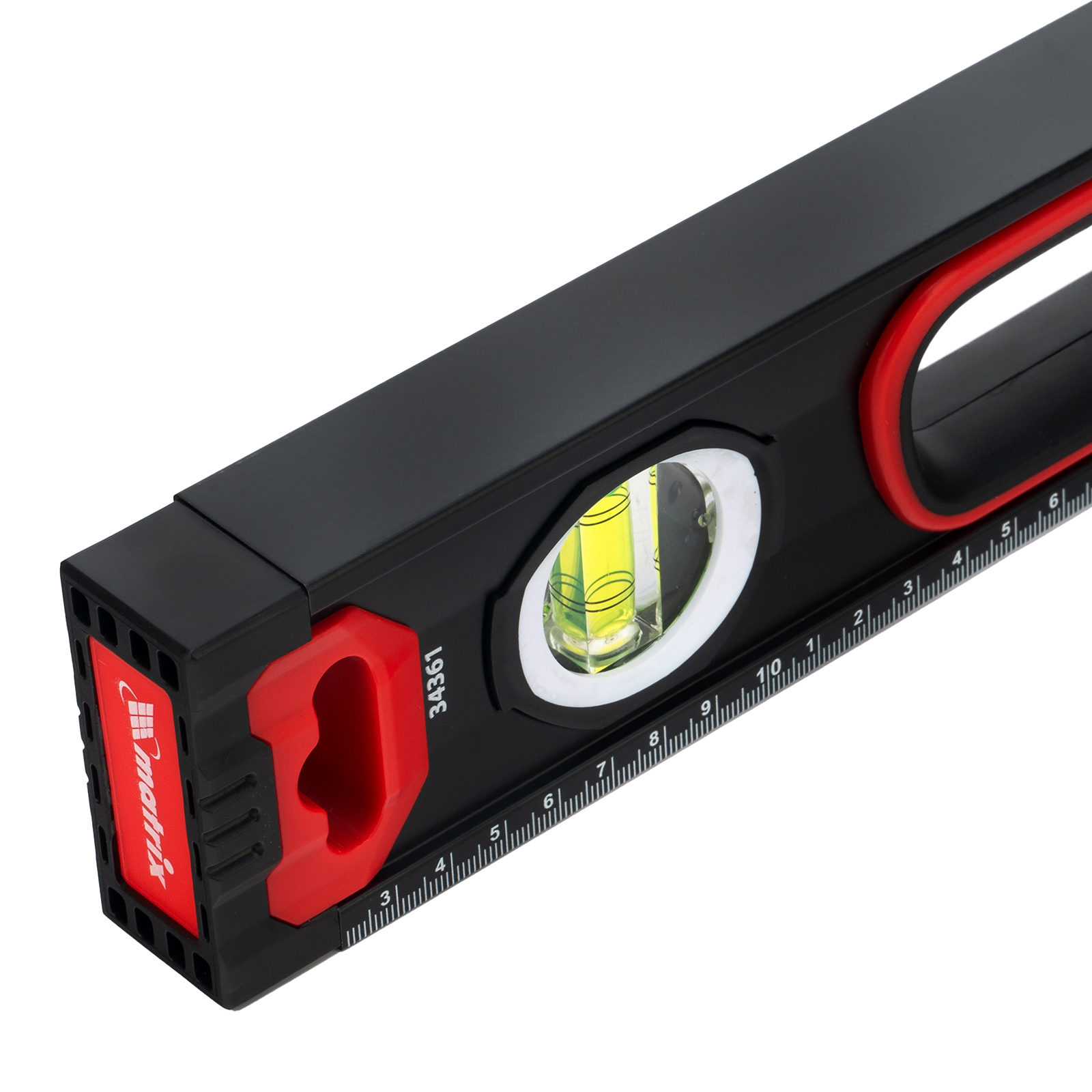 Уровень алюминиевый усиленный Matrix 34361 длиной 600 мм, фрезерованный, с 3 глазками и двухкомпонентными рукоятками, служит для проверки горизонтальных, вертикальных поверхностей, а также точности угла 45°. Пригодится частному мастеру и профессионалу для проведения строительных, ремонтных и монтажных работ.