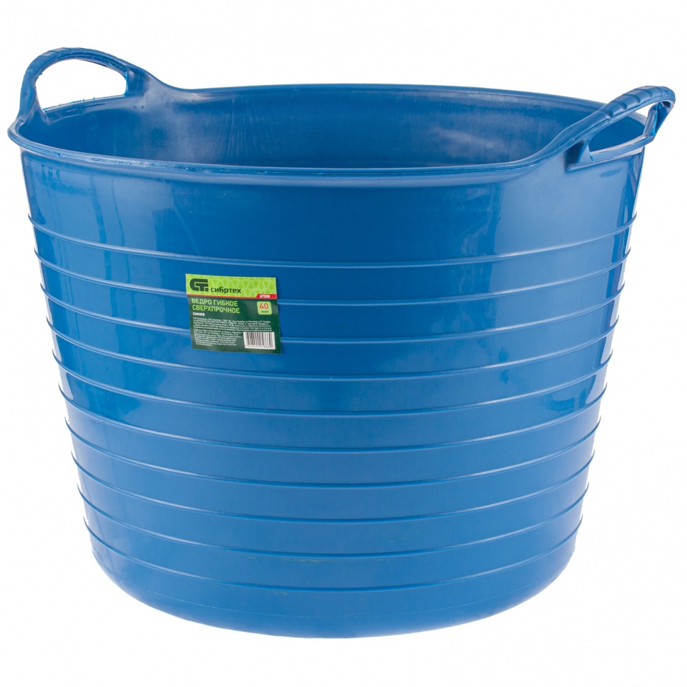 Сверхпрочное гибкое ведро Сибртех 67523 синего цвета, объемом 28 л, пригодится на даче, строительной площадке, на рыбалке, в быту. В нем можно переносить воду для полива, сыпучие материалы для ремонта, замешивать строительные растворы, хранить корм, также ведро пригодится для сбора урожая.