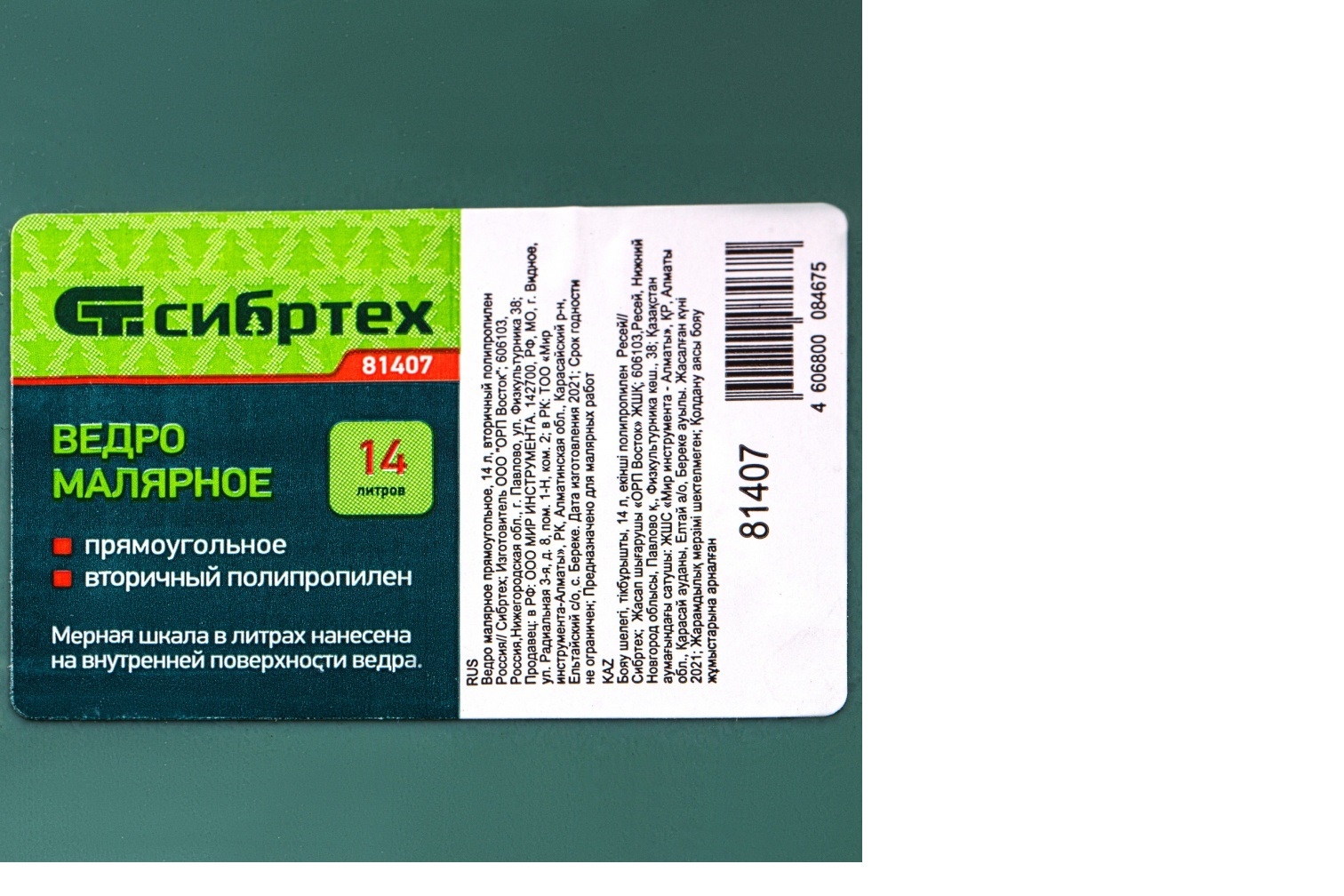 Прямоугольное малярное ведро Сибртех 81407 объемом 14 л, изготовленное из вторичного полипропилена, предназначено для разведения краски во время проведения отделочных работ. Устойчиво к воздействию агрессивных жидкостей, поэтому подходит для любых лакокрасочных материалов.