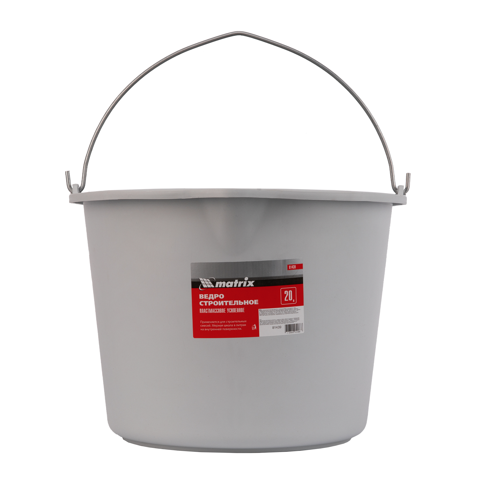 Усиленное пластмассовое строительное ведро Matrix 81439 объемом 20 л используется для строительных и отделочных работ. В нем можно замешивать лакокрасочные, клеевые и штукатурные смеси, а также перемещать их по строительной площадке. Ведро вмещает до 20 л раствора и подходит для выполнения работ значительного объема.