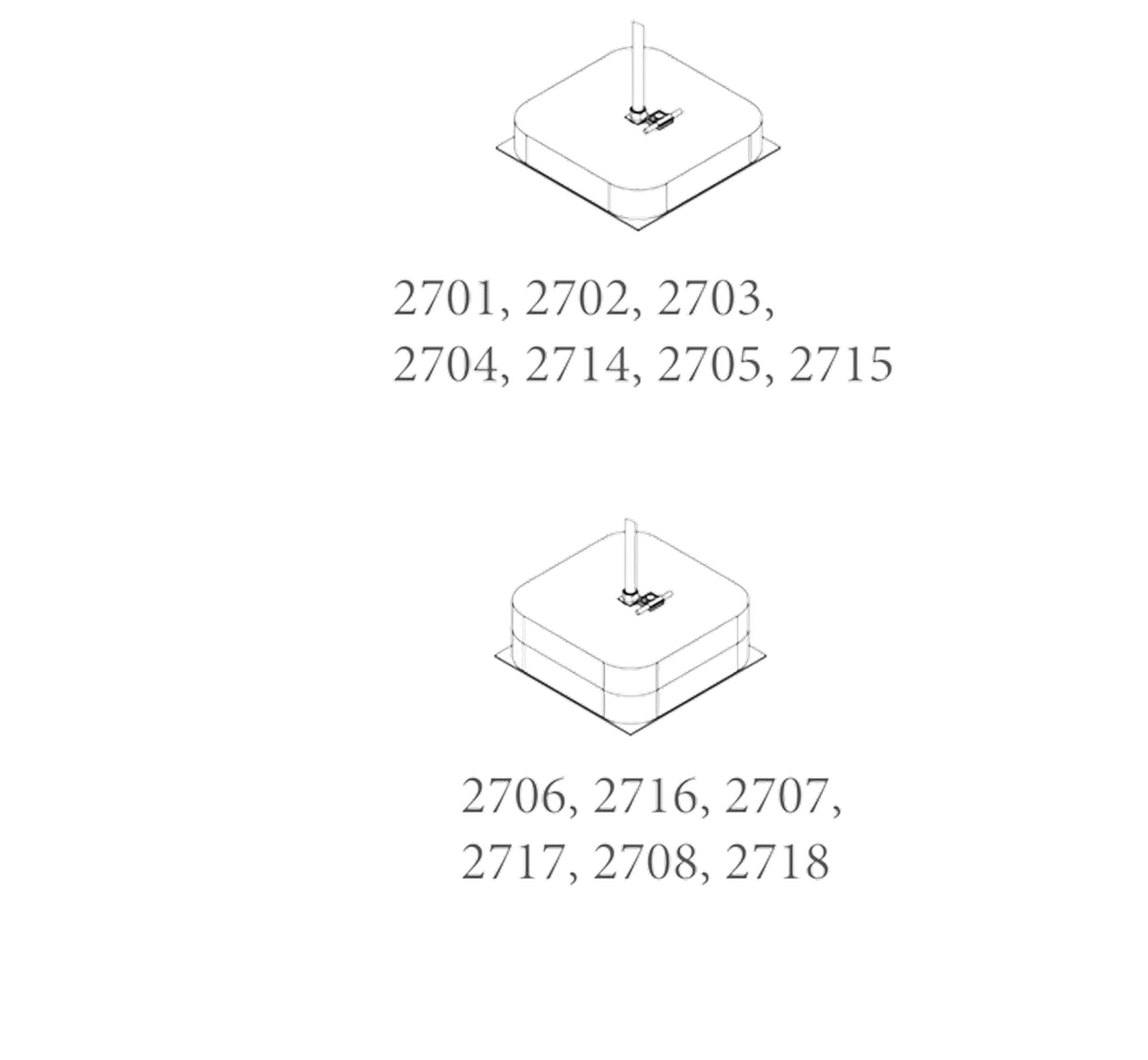 Комплектация утяжелителями, шт — арт. 2701 - 2705, 2714 - 2715 (1); арт. 2706 - 2708, 2716 - 2718 (2)