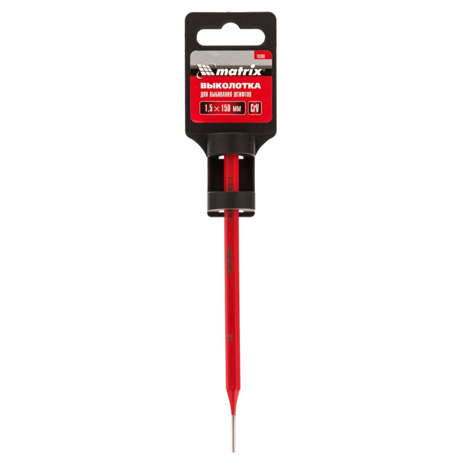 Выколотка Matrix 18300, 1,5 х 150 мм, сталь CrV, используется в слесарном и столярном деле, во время ремонтных работ. Она предназначена для выбивания штифтов, заглушек, заклепок, шпилек и других крепежных элементов.